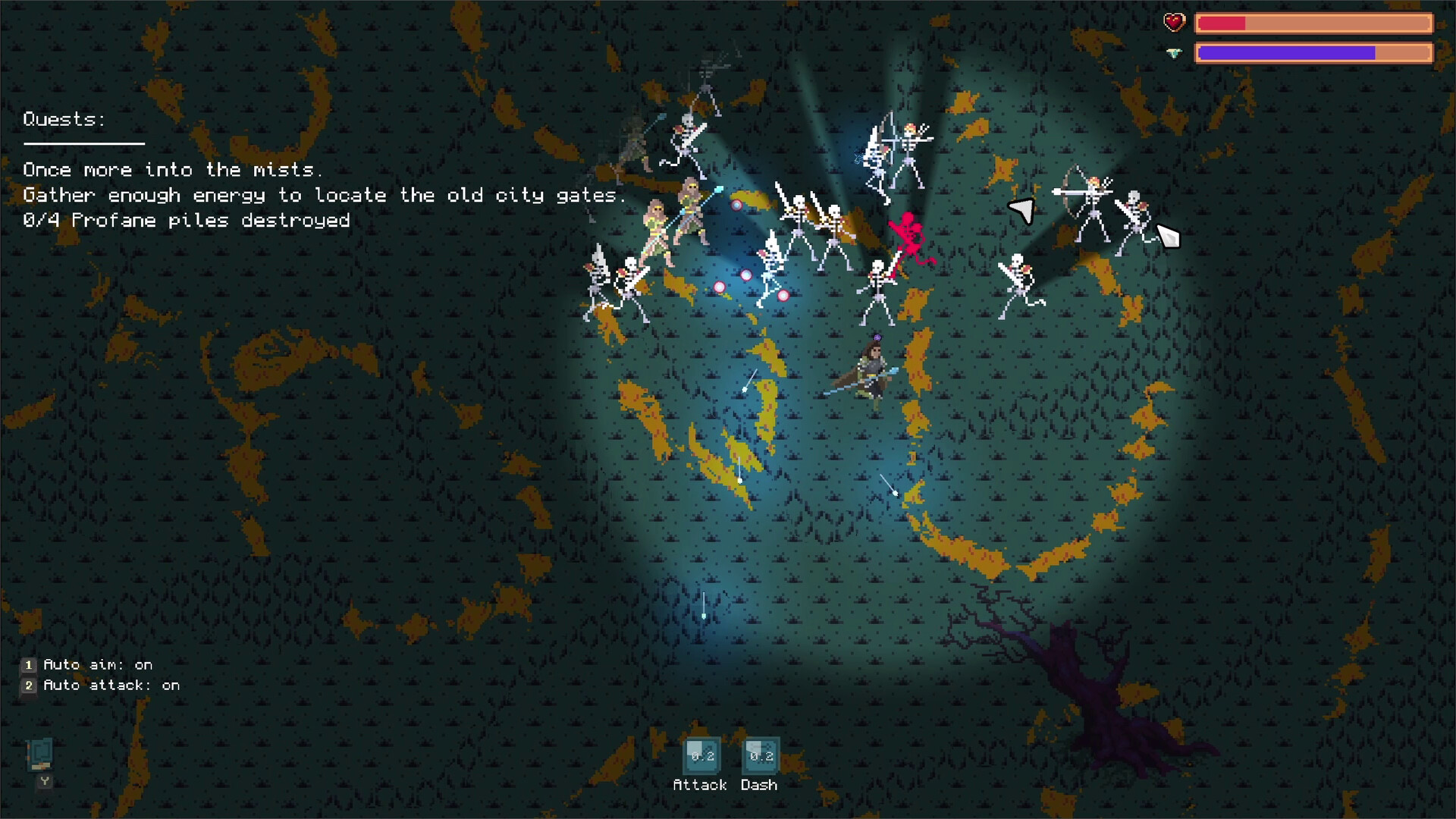 Foglit is an action roguelike, with RPG-inspired elements. You explore the cursed and ever-changing, ruined lands of Cirilis ... all that assuming that you can fight or run your way through. Checkpoints are only at the start of chapters and before chapter boss fights.