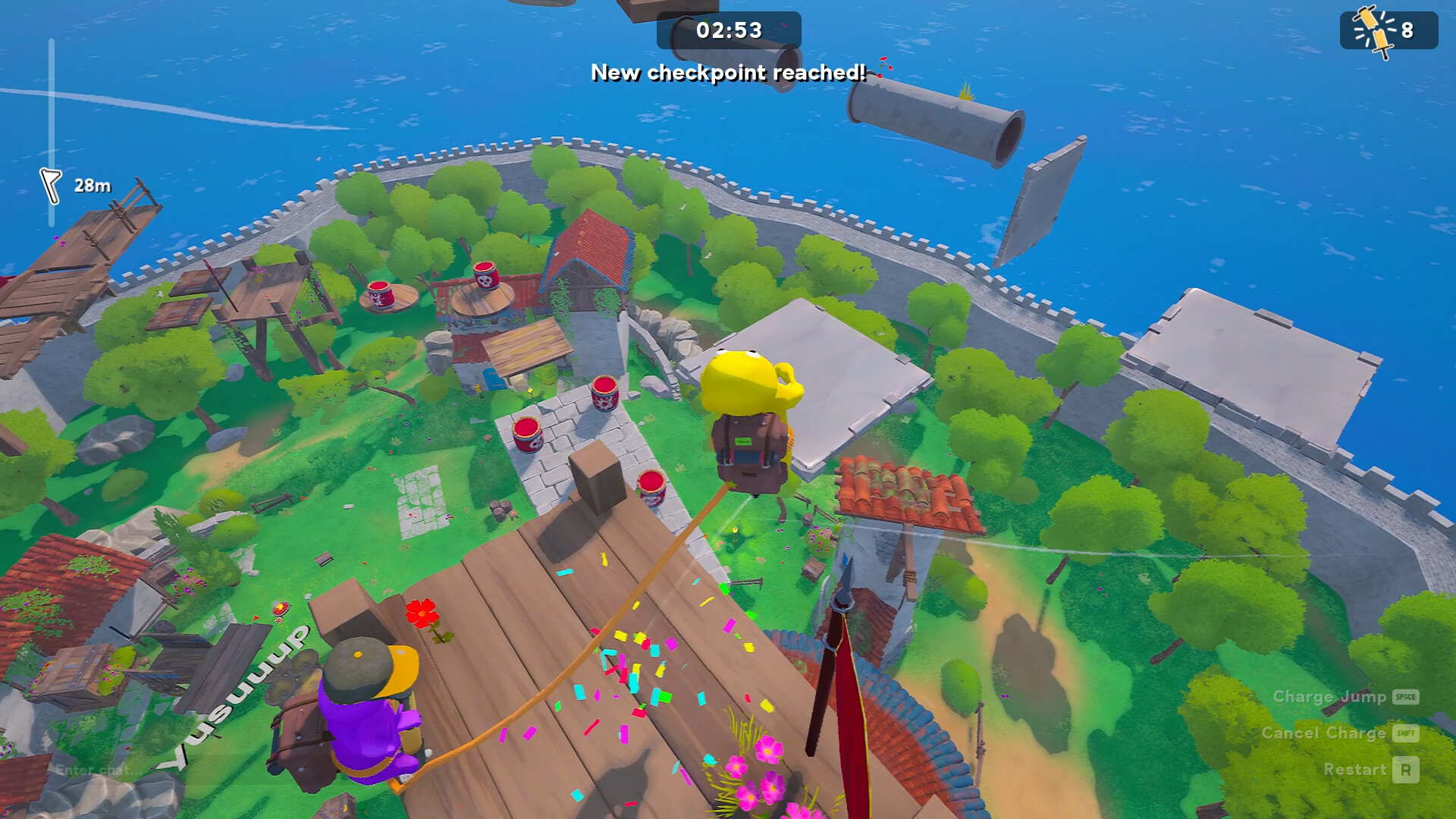 Team up with your friends with your pogo sticks and pass the obstacles! Reach the highest peak in this adventure playable with up to 4 friends. Pass through villages and caves, but be careful of the bosses. Let's see if you can reach the treasure waiting for you with your friends?