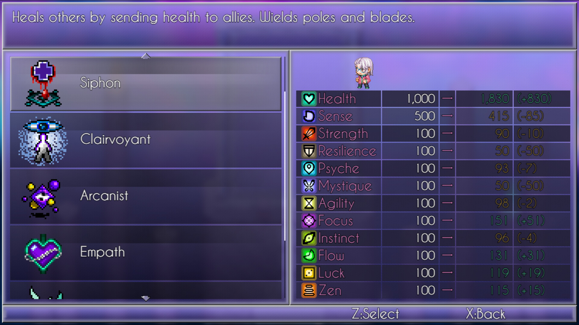 12 Core Stats – Each stat affects both combat and character. Strength reflects physical and emotional fortitude; Psyche ties into mental health and willpower.