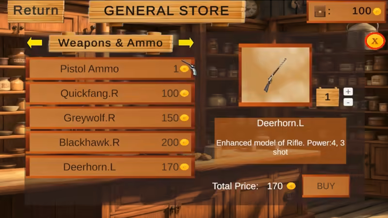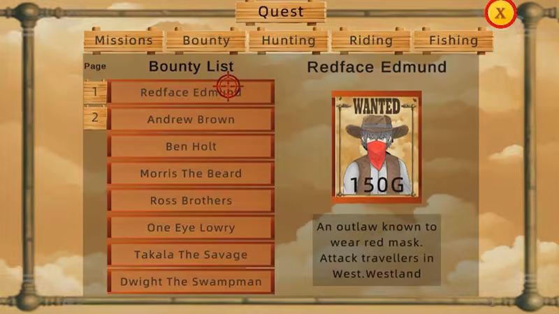 Battle- A unique battle system where you need to dodge and attack enemies from opposite panels. You will battle with different type of enemies. From Outlaws to Wild Beasts. Different weapon options are available to choose.