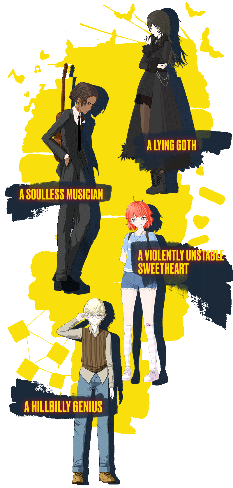 You’re surrounded by rebels. This is a camp for troubled children, but everyone’s troubles are cooler than yours. Try to fit in with misfits. Try to go on a date with one. Try to make friends with another one.