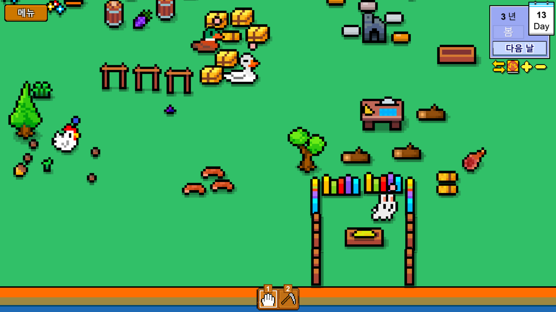"이 게임은 마우스 클릭과 드래그를 주요 조작 방식으로 하며 하루에 시간 제한이 없다. 플레이어는 별로 시간 관리를 할 필요가 없다. 당일 할 일을 모두 마친 뒤 수동으로 하루를 종료하면 된다.게임에는 화폐의 설정이 없고,거래는 물물교환 방식으로 이루어지며 플레이어는 경영 활동을 통해 새로운 아이템을 획득해야 한다.