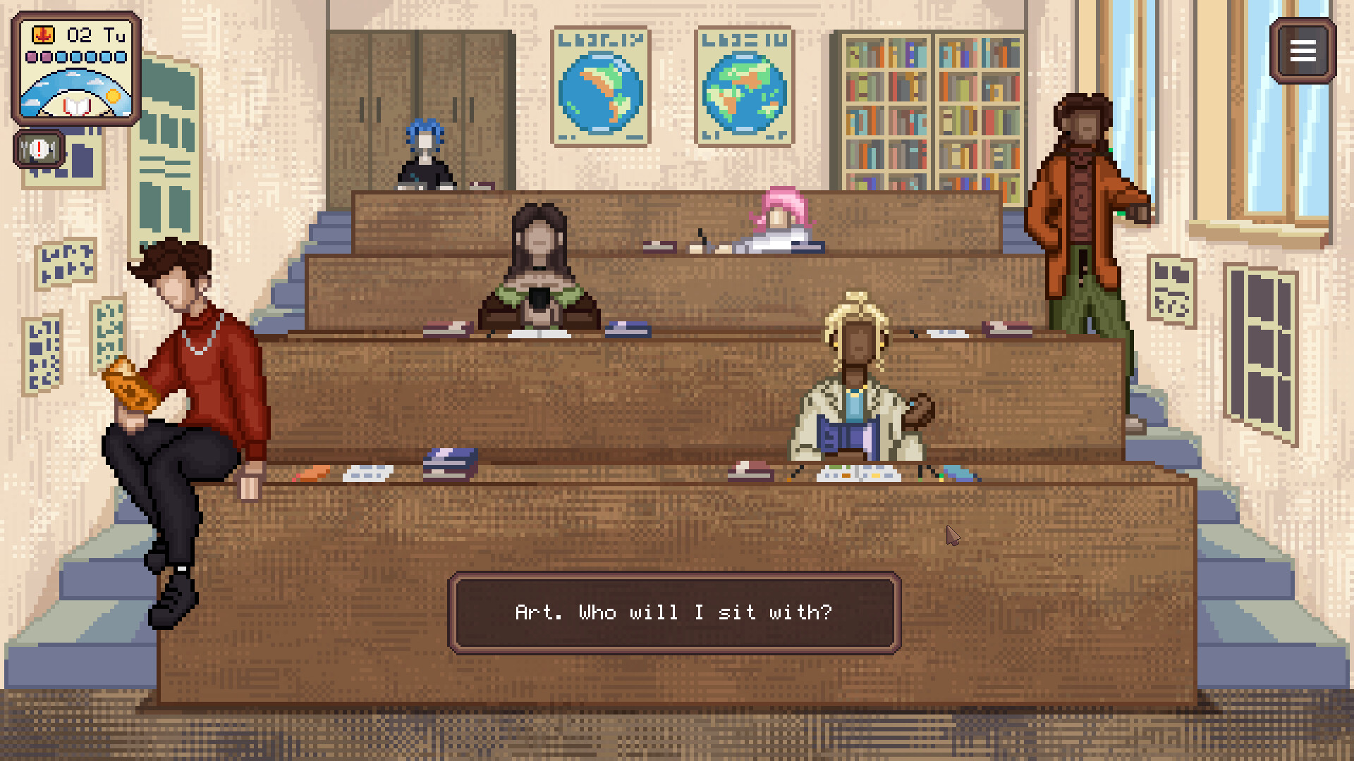 You’re here for knowledge (aren’t you?). Expect mini-games on various subjects, daily study routines, homework, and of course, a scholarship to keep you motivated not to drop out after your first semester.