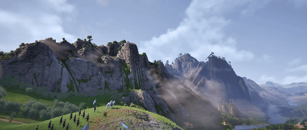 游戏具有无缝连续,且规模超大的真实3D沙盘地图。更有山洪雨雪、节气变化,昼夜更迭。