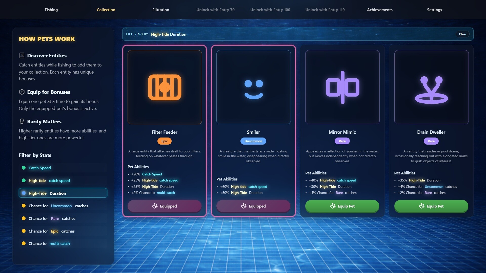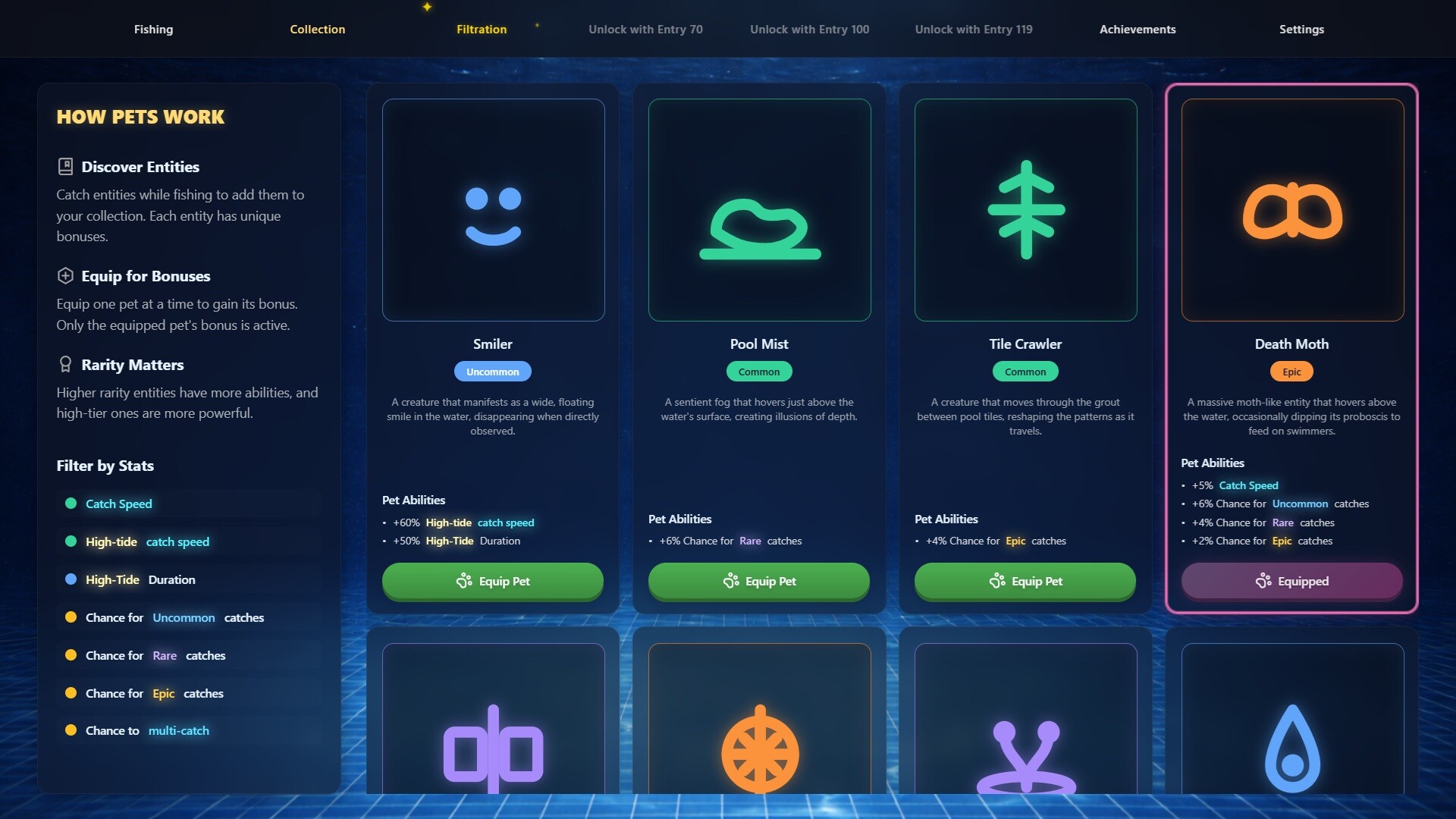 • COLLECT PETS - Document your catches in a detailed collection system. Choose them as your pet and companions to progress even faster through the pools.