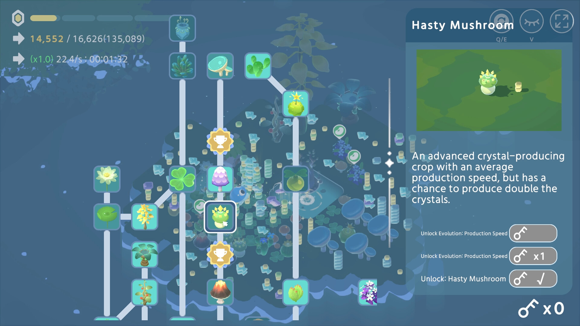 Each crop has its own unique traits—some focus on producing crystals, others help with transport, and some offer powerful boosts. Cleverly combining them can greatly speed up your island’s crystal output.