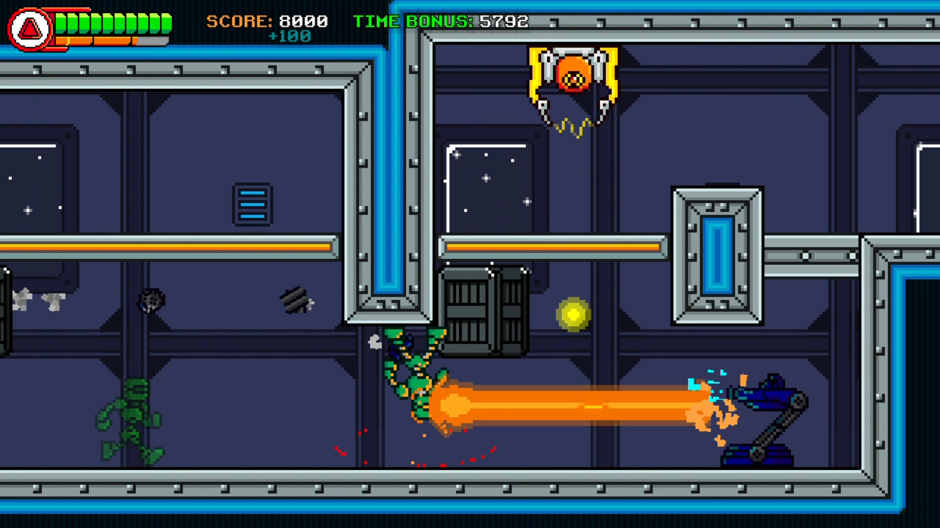 Shooting, dashing and flipping gravity are your main tools: