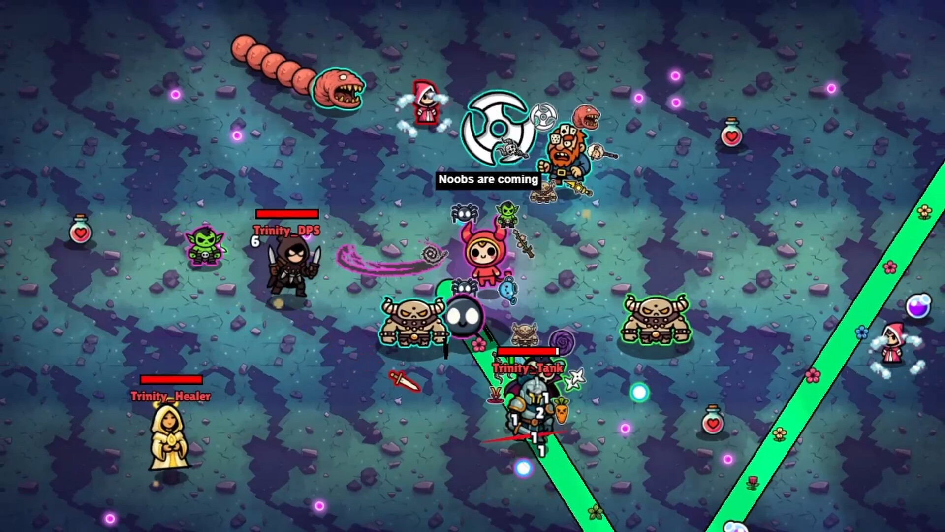 • 웨이브 기반 카오스 배틀 – 20~90초마다 몰려오는 Noob 무리를 가능한 한 많이 처치하라!