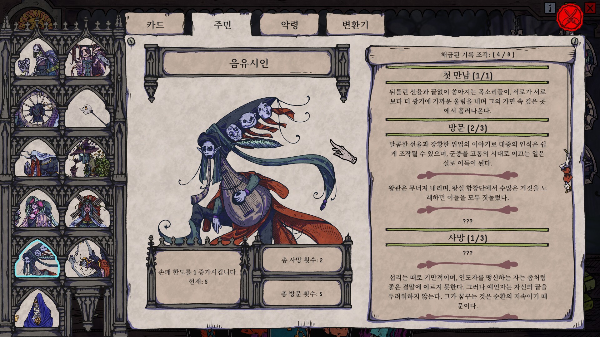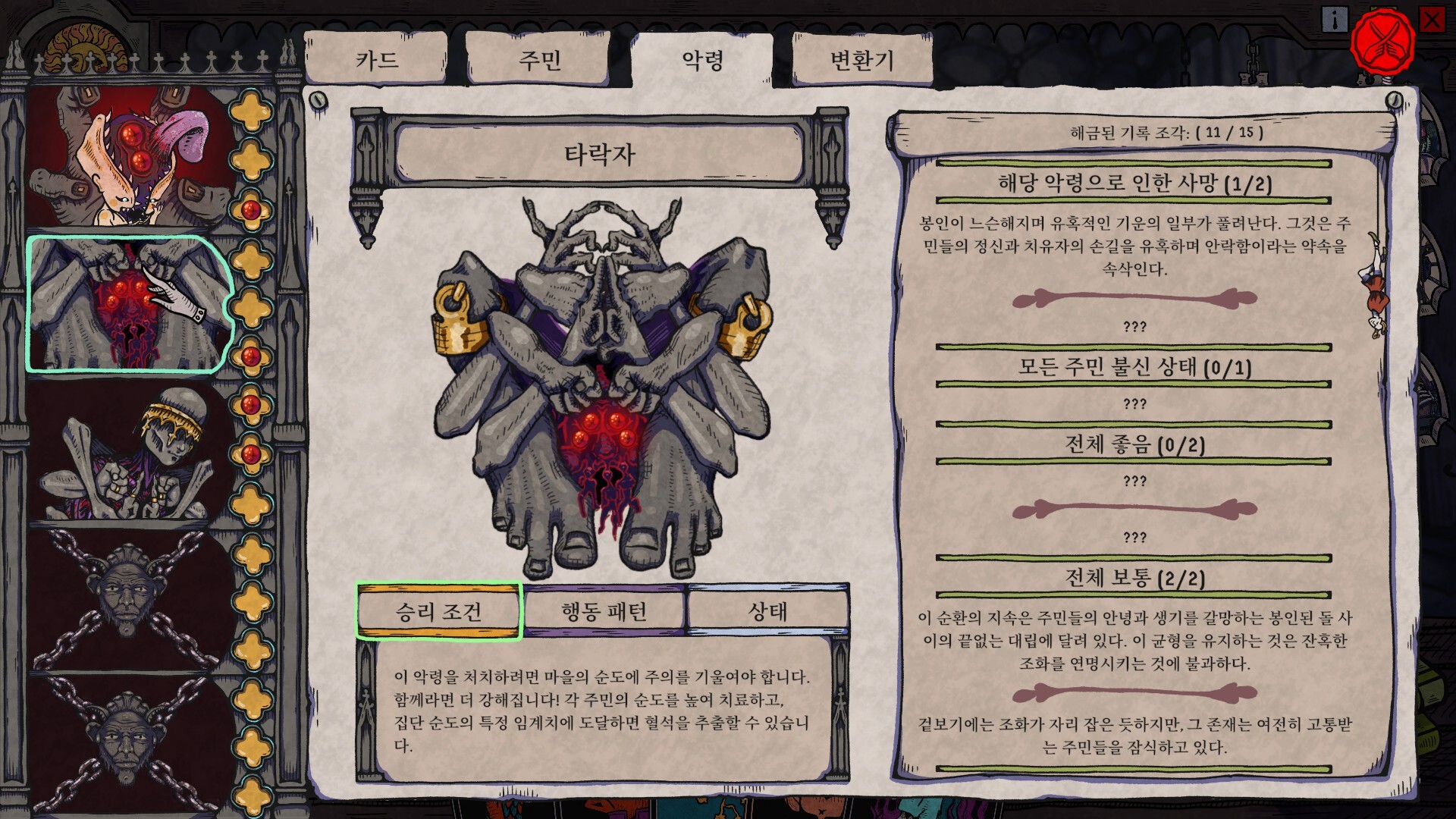 <해혈사>는 중세풍 카드 덱빌딩 게임입니다. 나만의 덱을 구성해 주민들의 상태를 조절하고 사령의 침식을 막아내세요. 그들의 고유 능력으로 치료 수단을 강화할 수 있습니다. 수상한 요법이 효과를 발휘하길 바랍니다!