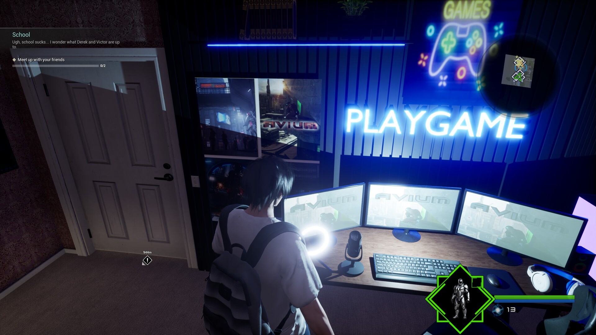 Explore the fantastical modern metropolis on your Cytron Motorcycle until you level up and Fly across rooftops or Wall-Run up skyscrapers, finding loot for crafting and lurking enemies for XP. Scattered lore and triggered City Events will populate your Help database with info about those items and enemies.