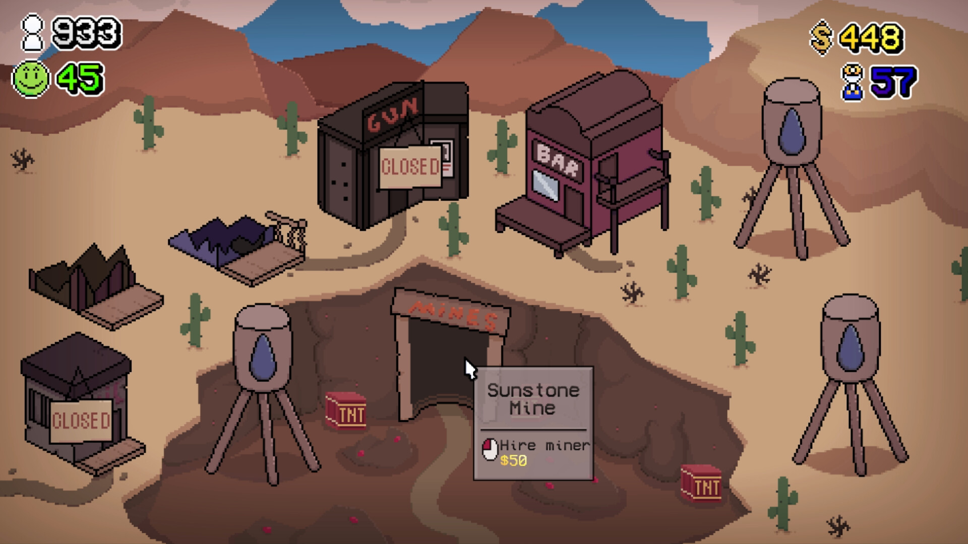 Different gimmicks that spice up the gameplay experience. like being able to hire workers for extra money, or controlling the press to rile up the people. All with the end goal of making the citizens leave.