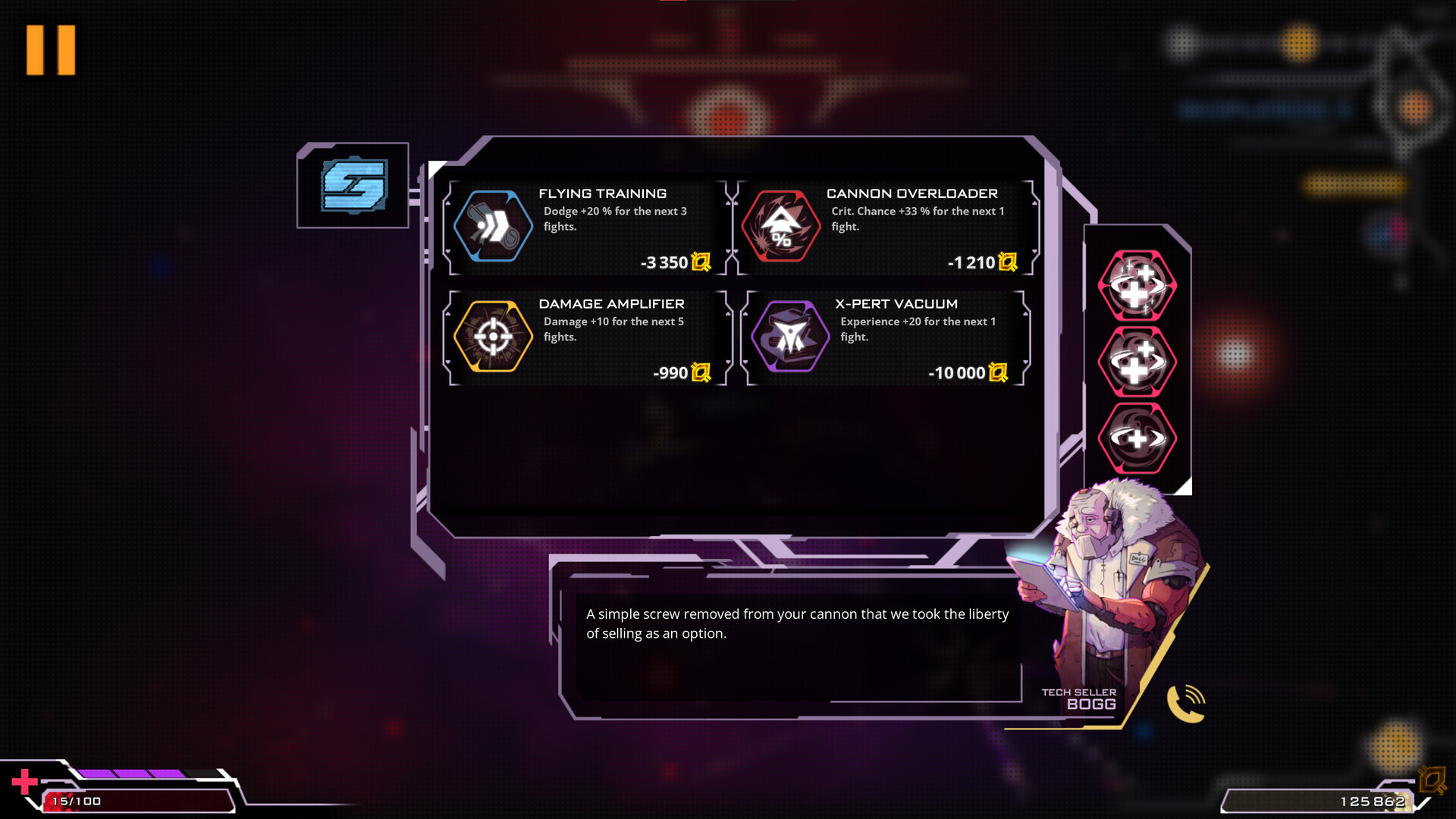 Each battle strengthens your ship, and discoveries made across the galaxy can influence your chances of victory. And if you're in a bind, you can always visit your favorite coworker Bogg, who will gladly sell you upgrades at outrageous prices.