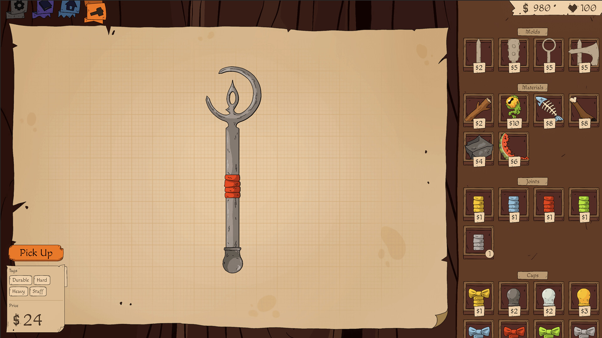 Roughly Crafted is a craftsman simulator where you slap together monster bits and odd materials into one-of-a-kind weapons. Run your own shop: experiment with designs, bargain with adventurers, and grow your collection of crafting parts. Remember: the right tool can save a hero’s quest!