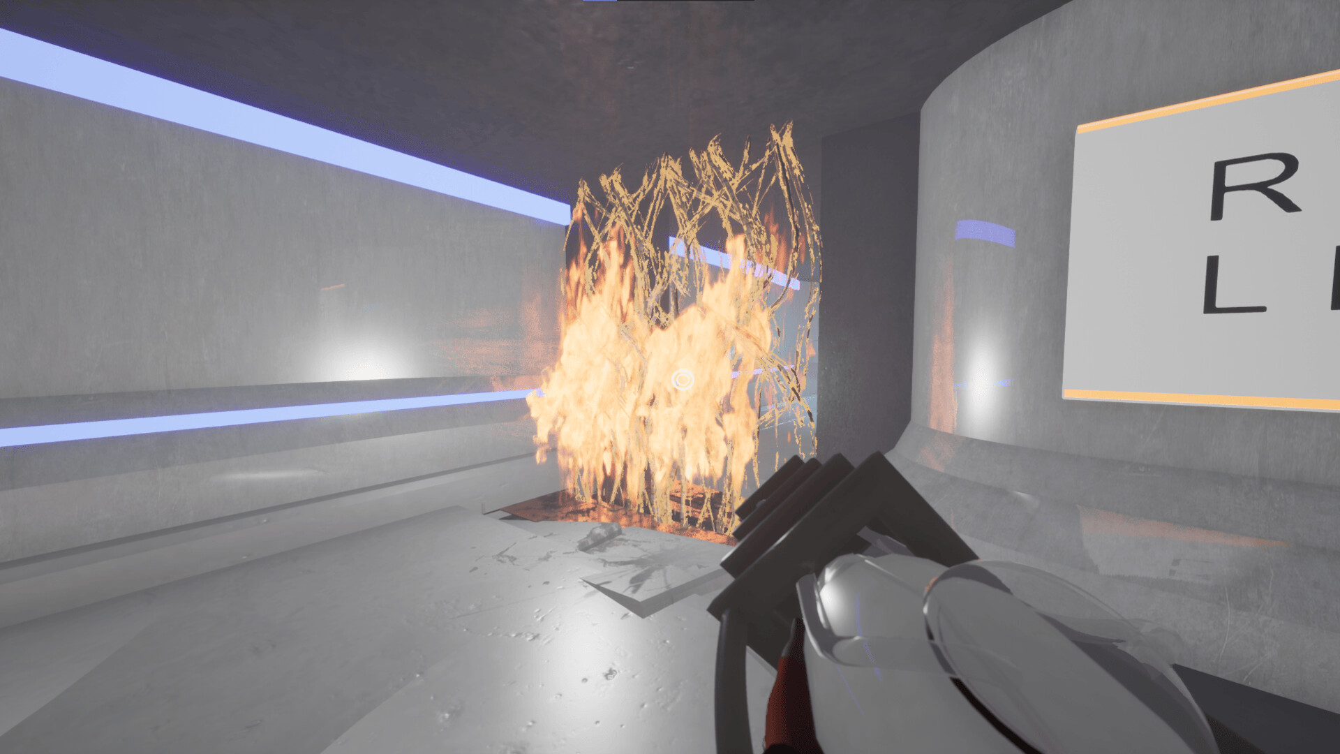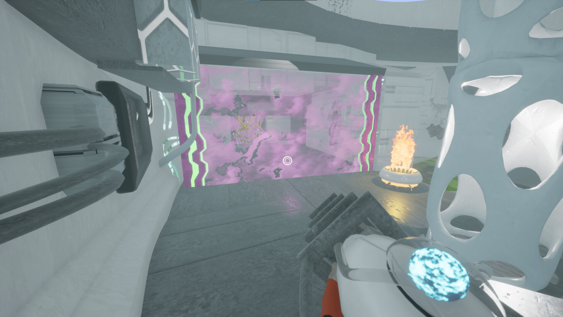 One More Experiment is a first person puzzle-platformer based on elemental interactions. You control The Absorber device, capable of absorbing fire and water from the environment. Use this power to navigate around obstacles, activate switches and alter the environment.