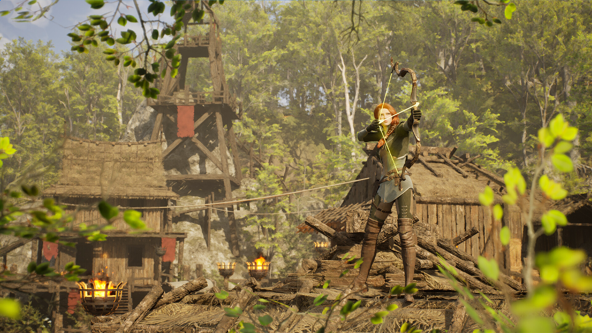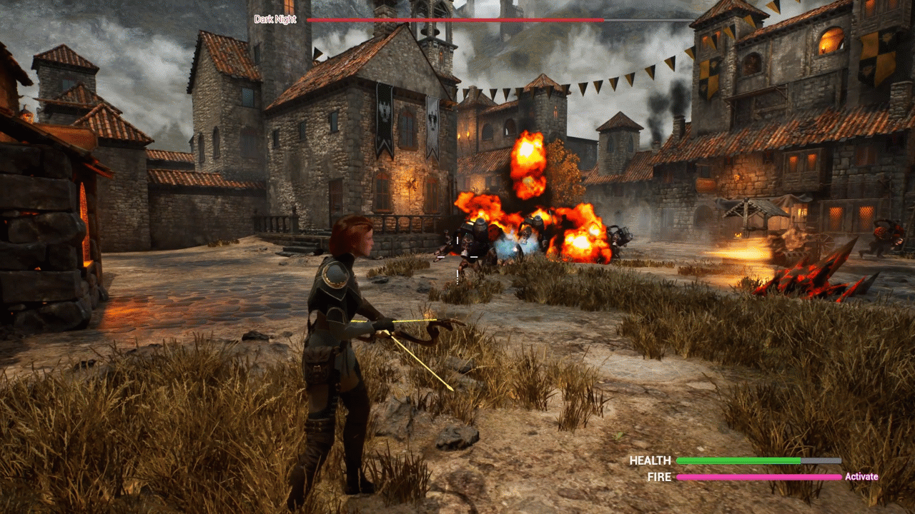 Combining bow attacks, flying kick melee, and dodging can create spectacular explosive attack effects.