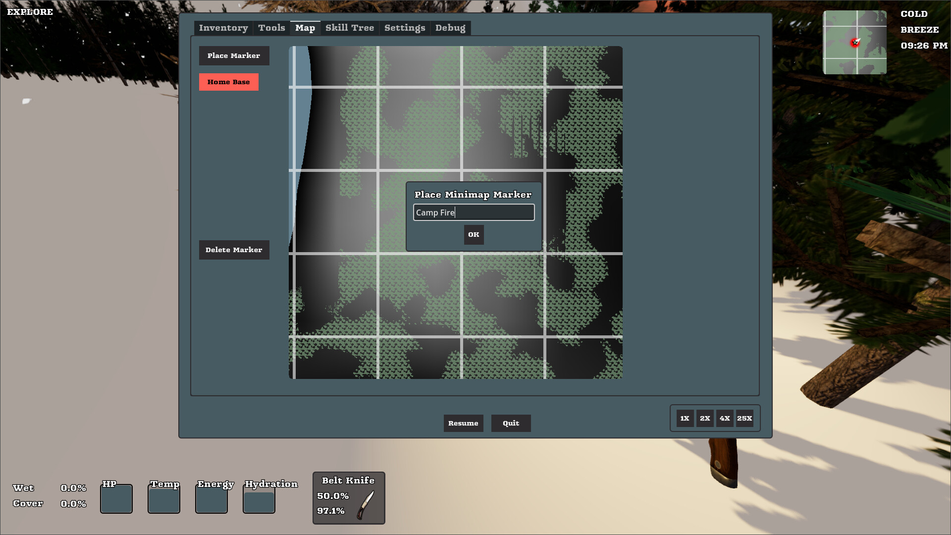 ⛰️ Explore the vast wilderness to find caches of new tools and resources!