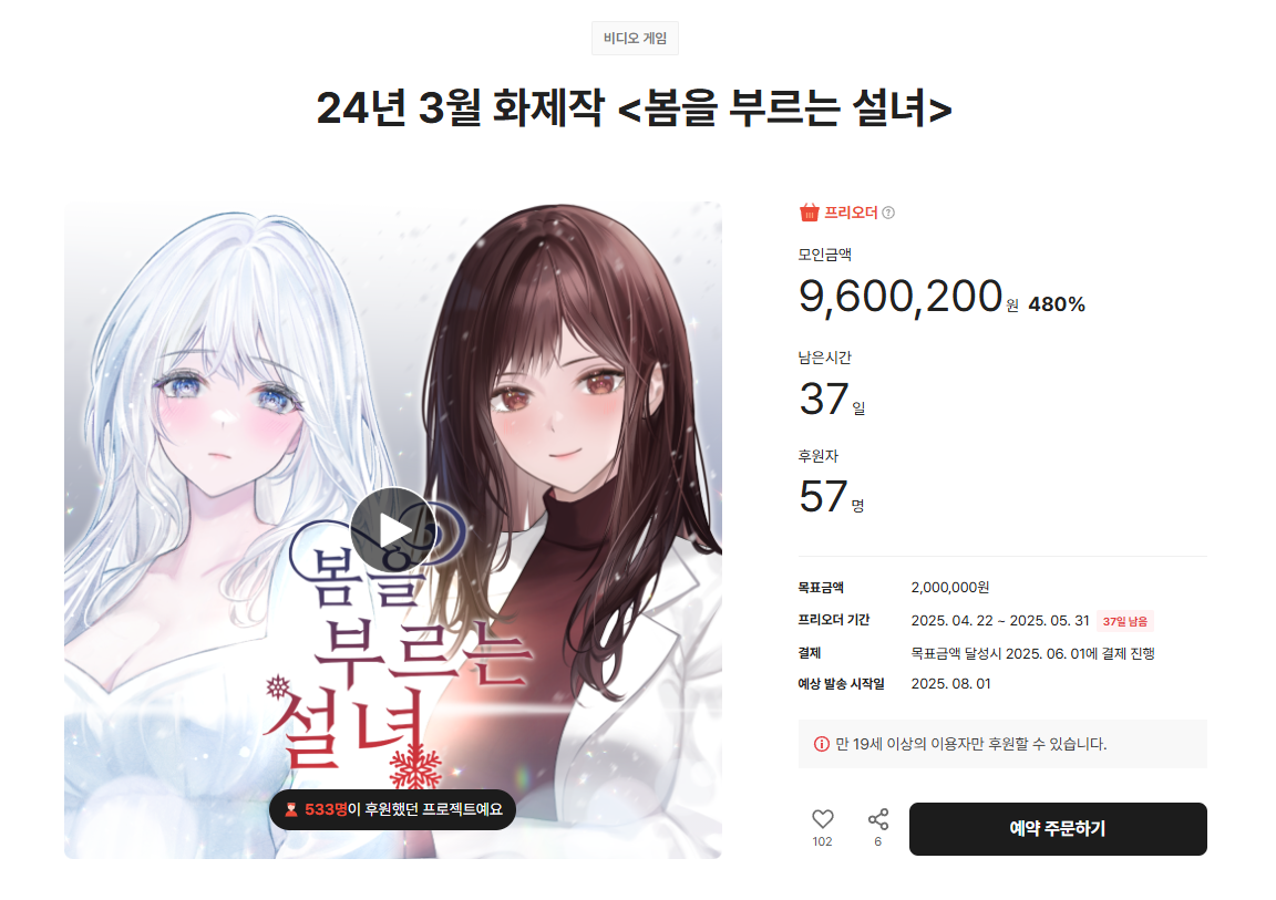2025. 04. 22 ~ 2025. 05. 31 기간동안 <봄을 부르는 설녀>의 팬콜 펀딩을 진행중입니다🎉