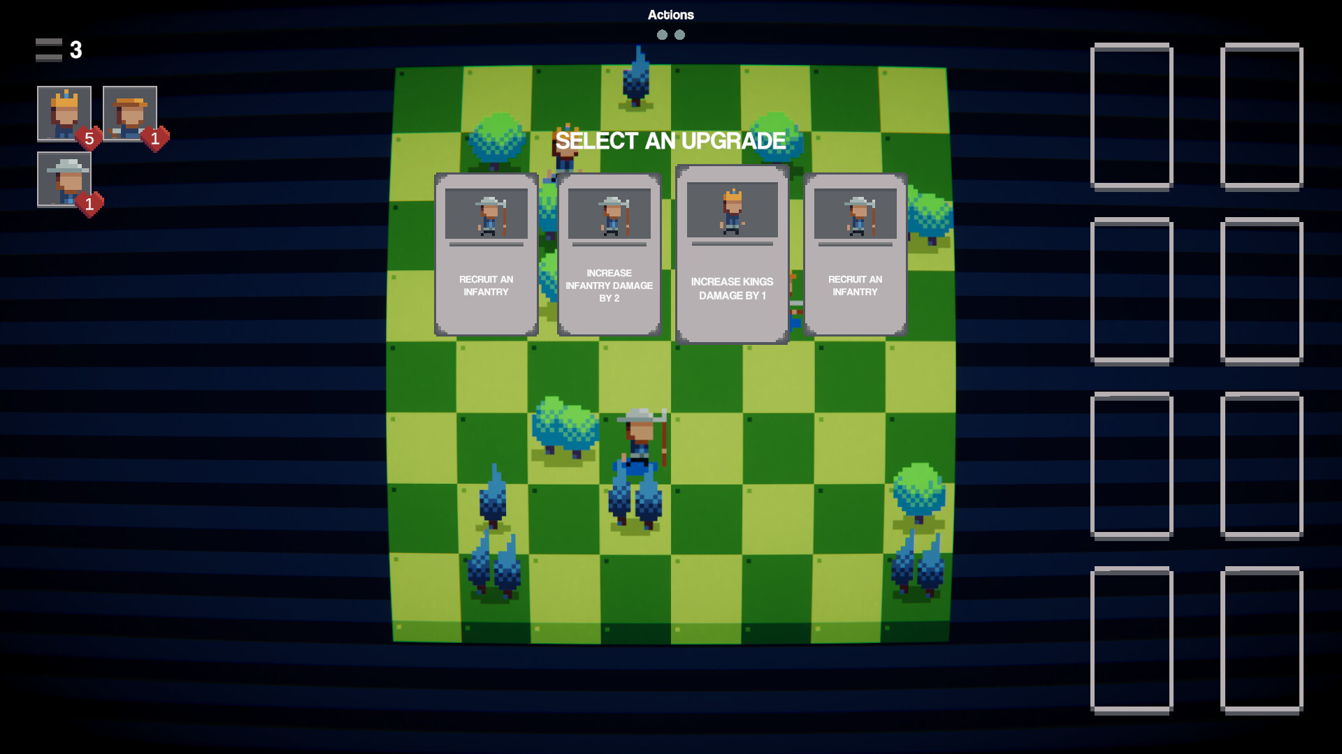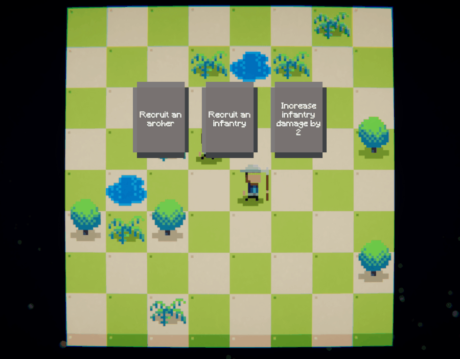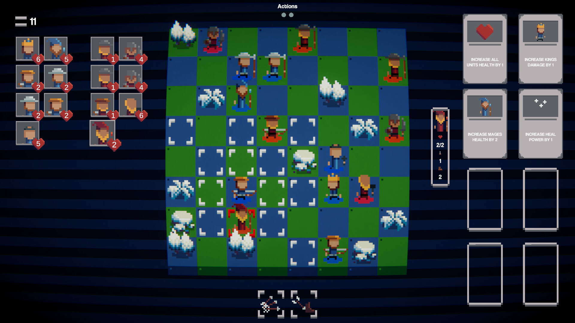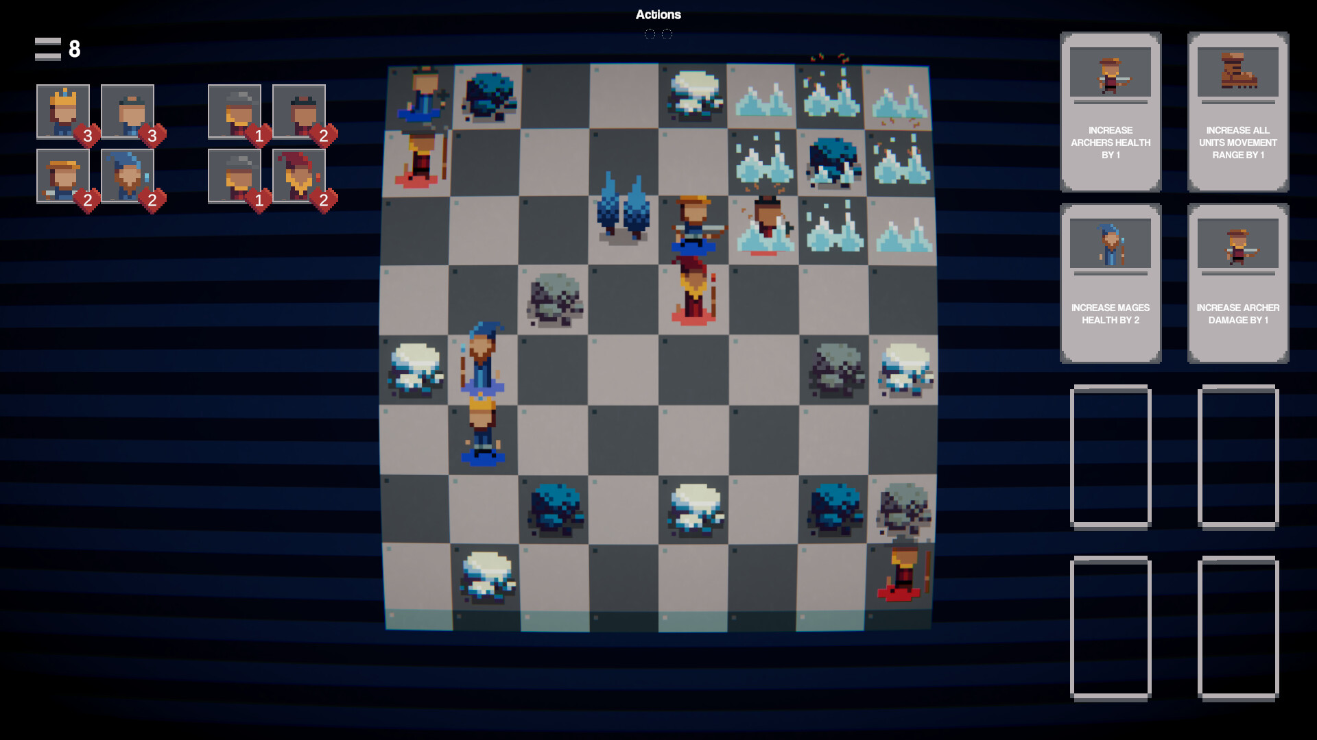 Command your army in a tactical, turn-based strategy game where every move matters. Battle across an 8x8 grid, blending classic chess-like mechanics with roguelike progression.