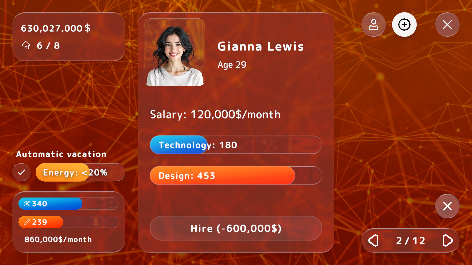 Execute full-scale marketing campaigns and acquire rival companies to merge their talent with yours. Analyze real-time market trends and adjust your business strategy to stay ahead in the competitive tech arena.