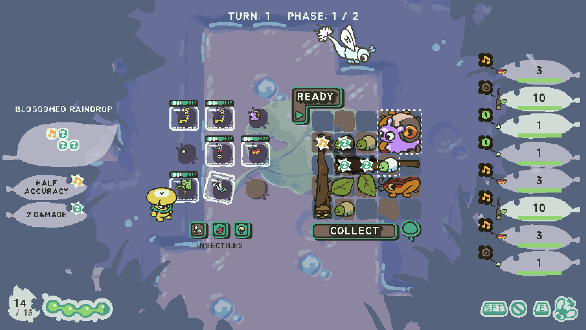 INSECTILE is a creature collector RPG where you piece bugs together to form your attacks! Assemble your party of cute bugs and synergize their puzzling shapes with their unique effects!
