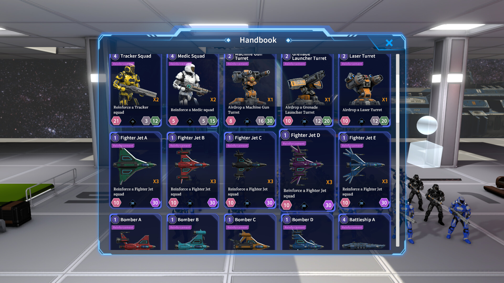 Killing enemies in battle earns reinforcement points, which can be used to summon turrets, fighter planes, or battleships for support. Powerful turrets and aerial forces can quickly alter the dynamics of the battlefield.