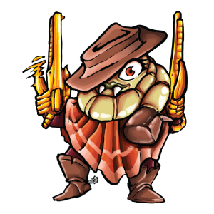 Pya – the Scorpion Ranger - Dwelling on the frontiers of nature, this scorpion gunslinger has felt the effects of pollution herself. Her pincers have been lost in an avalanche of trash, and her once potent poison is a mere drop-worth today. Despite these mere nuisances, her aim is as sharp as ever, and given one bullet, she will surely hit the target dead on.