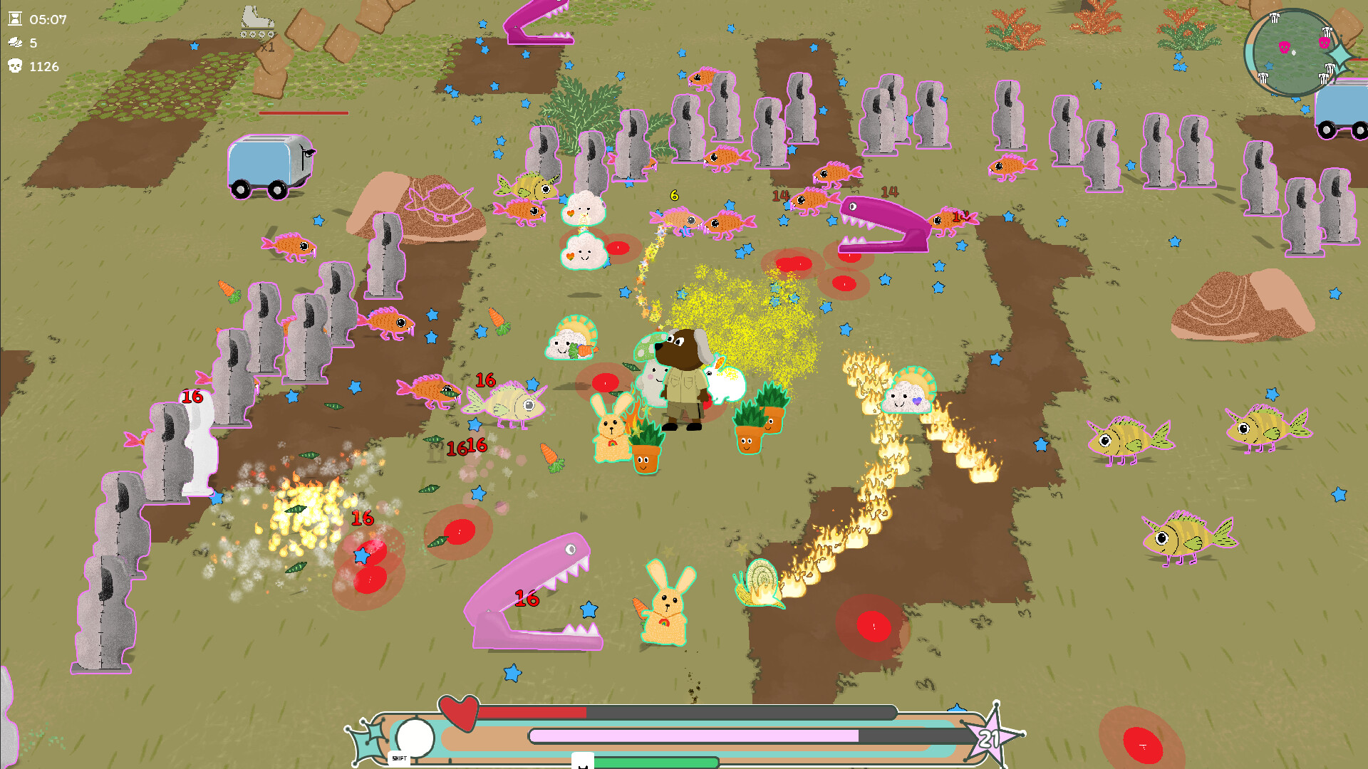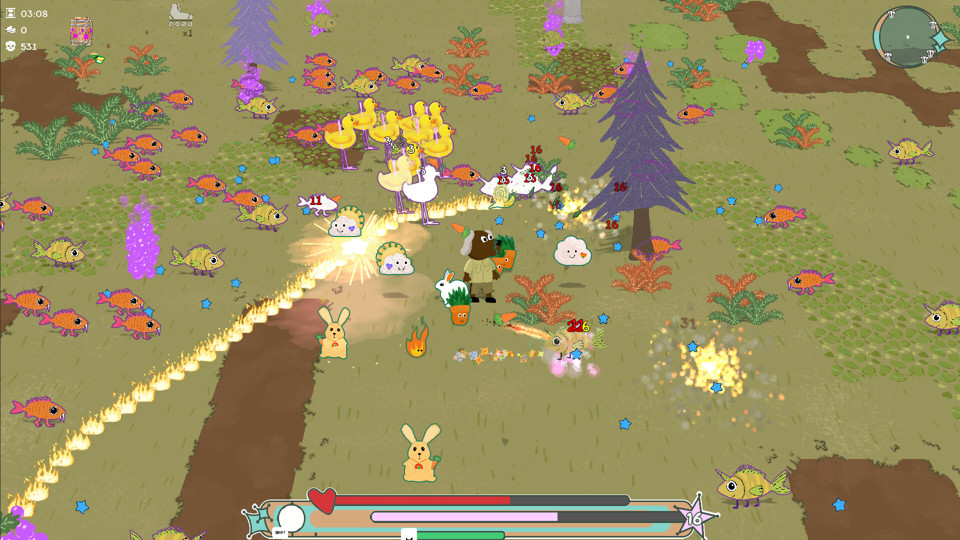 Each plushie has unique abilities and behaviors—from the defensive Brocco, who repels nearby enemies, to Tangelo, a charging berserker tortoise. Level up your plushies to boost their power and unlock new capabilities.