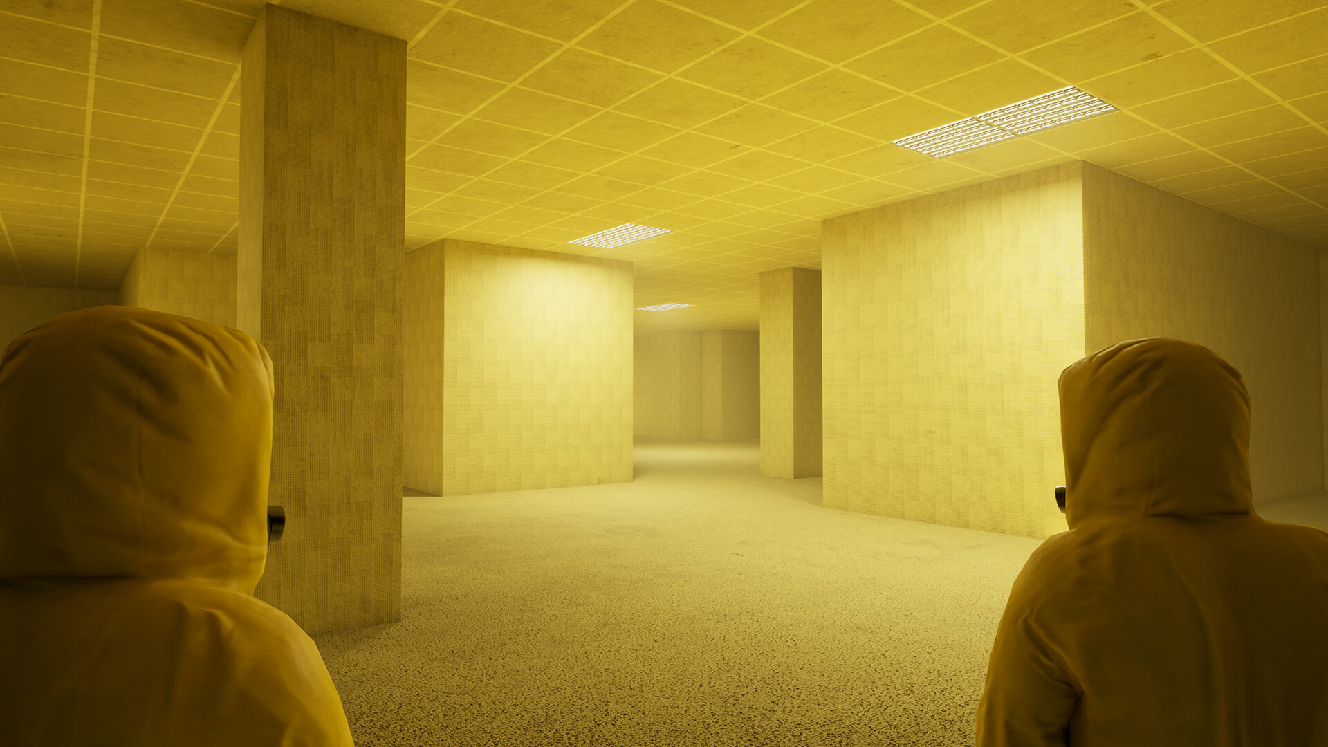 1-4인용 협동 호러 액션 게임으로, 플레이어가 서로 사슬에 묶여 백스테이지를 함께 탐험해야 하는 독특한 협동 게임 체인드 백룸에 오신 것을 환영합니다.