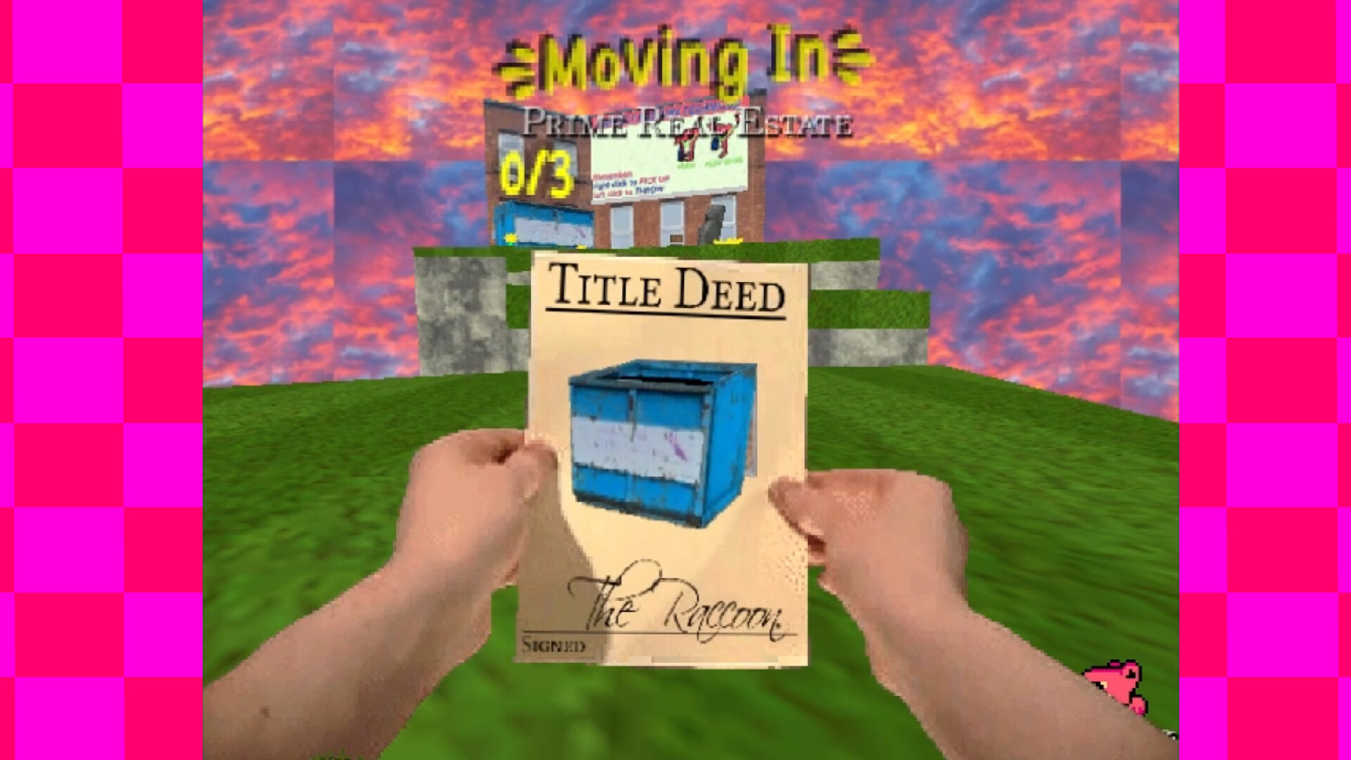 Funi raccoon Game, a 3D Platformer Collectathon. You play as a raccoon who has recently acquired a new home (Dumpster).