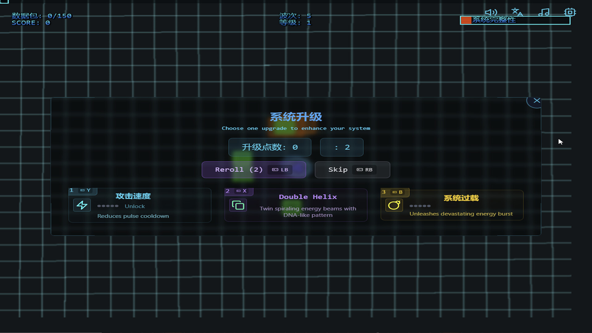 LB / Left Bumper (Button 4): Reroll Upgrades