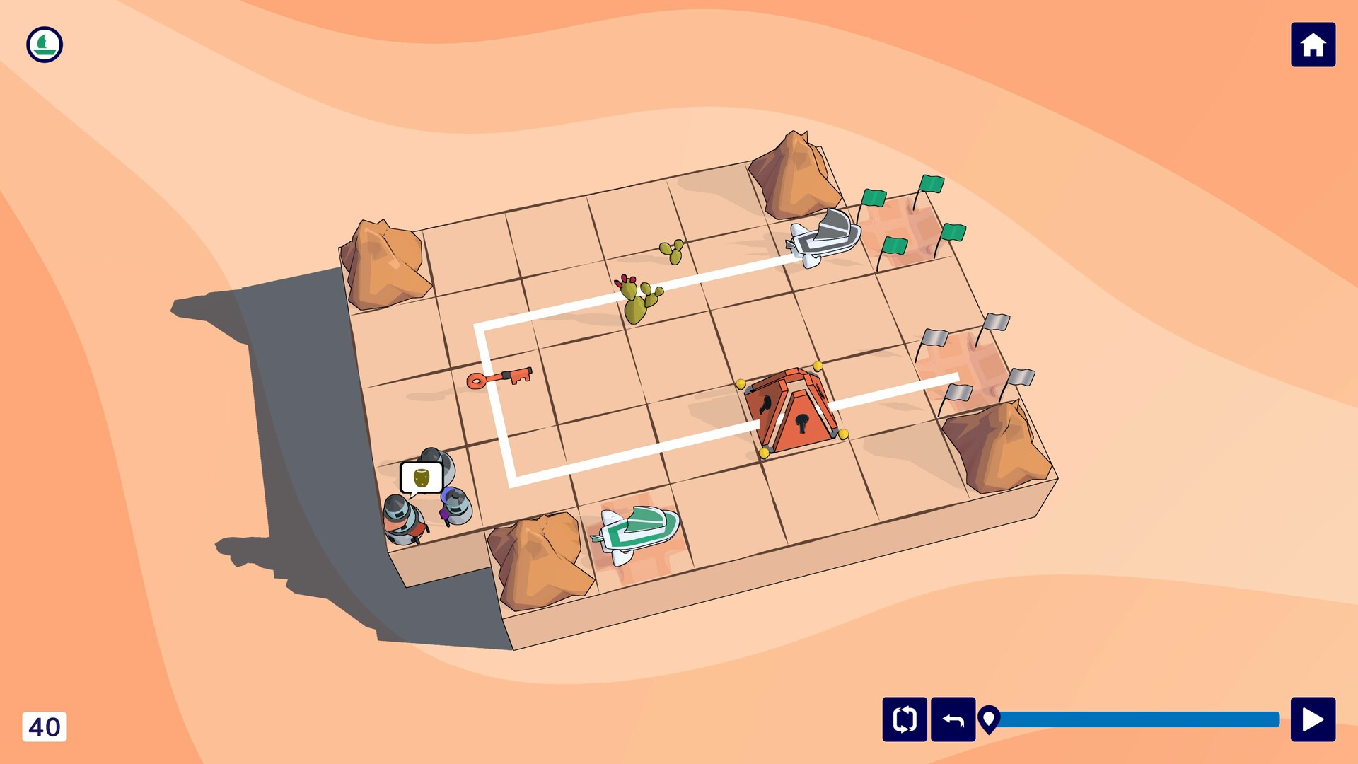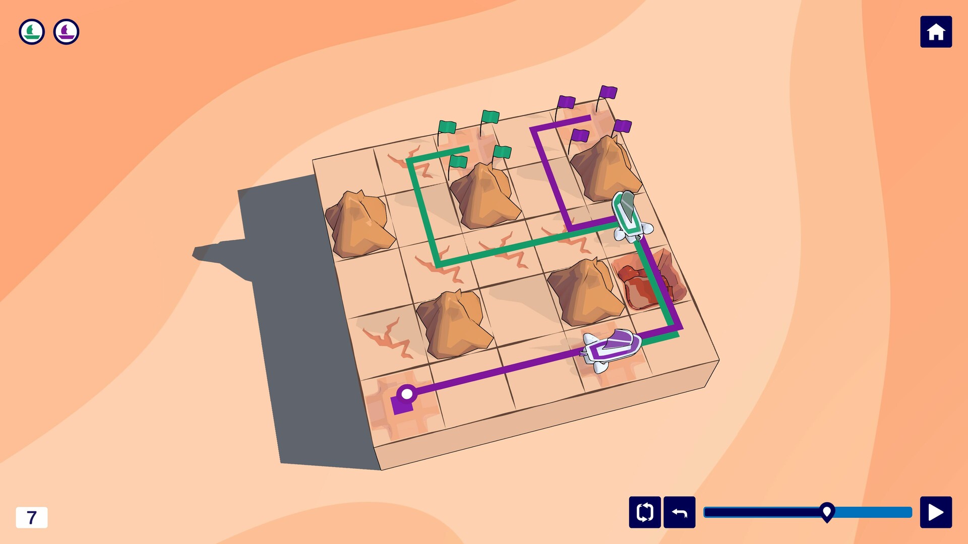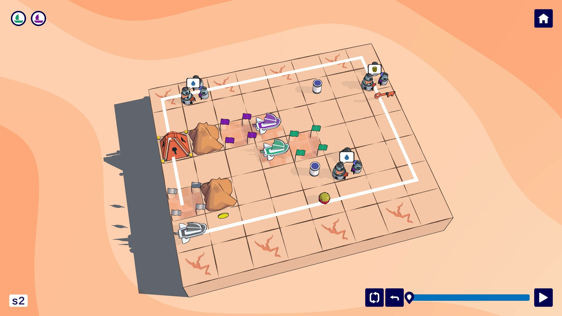 Plan your route by drawing paths across the desert grid. All sandships must follow their trails without visiting the same space twice - and without crashing into one another. With every route you sketch, you're constructing a web of paths across the dunes.