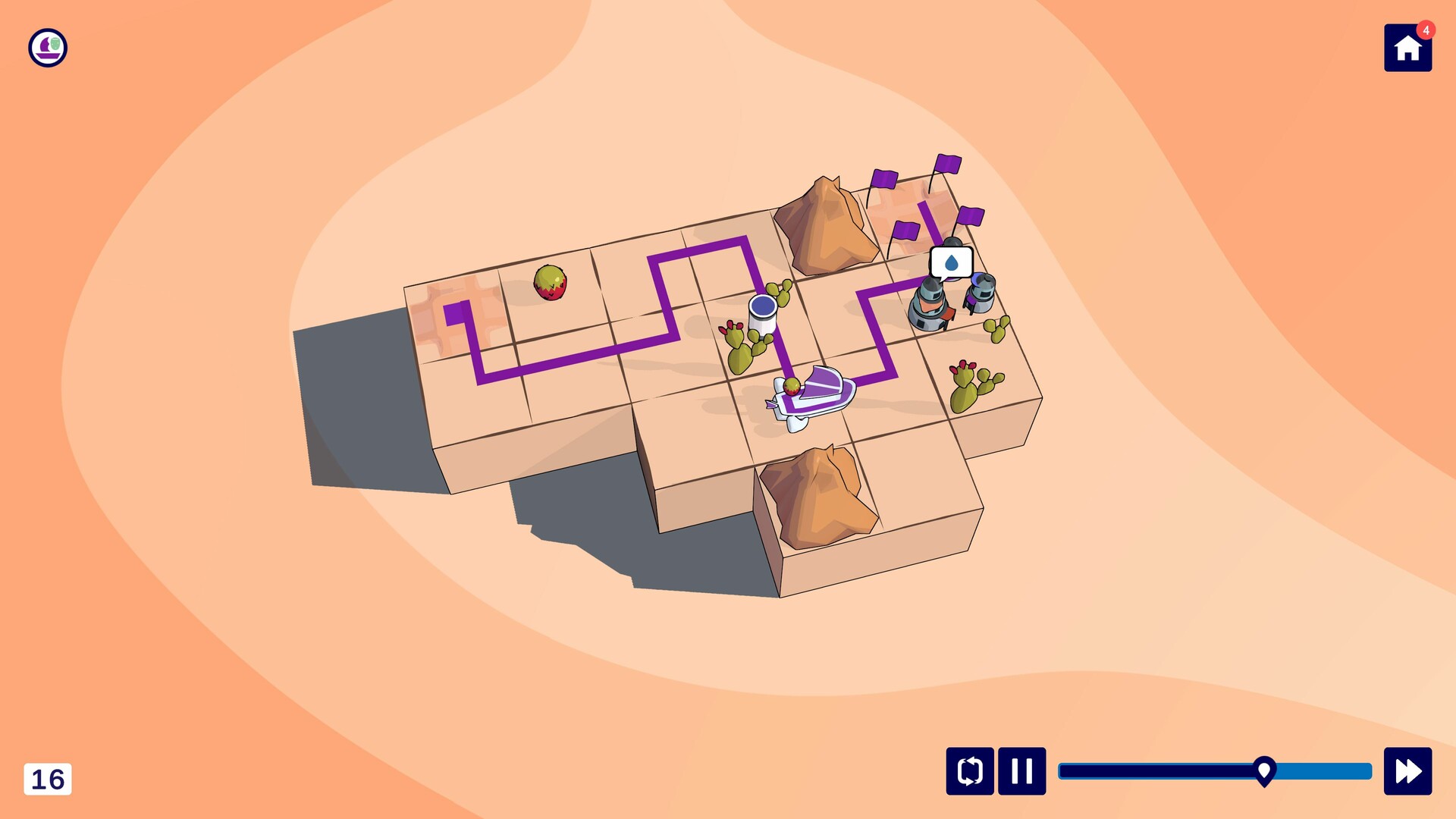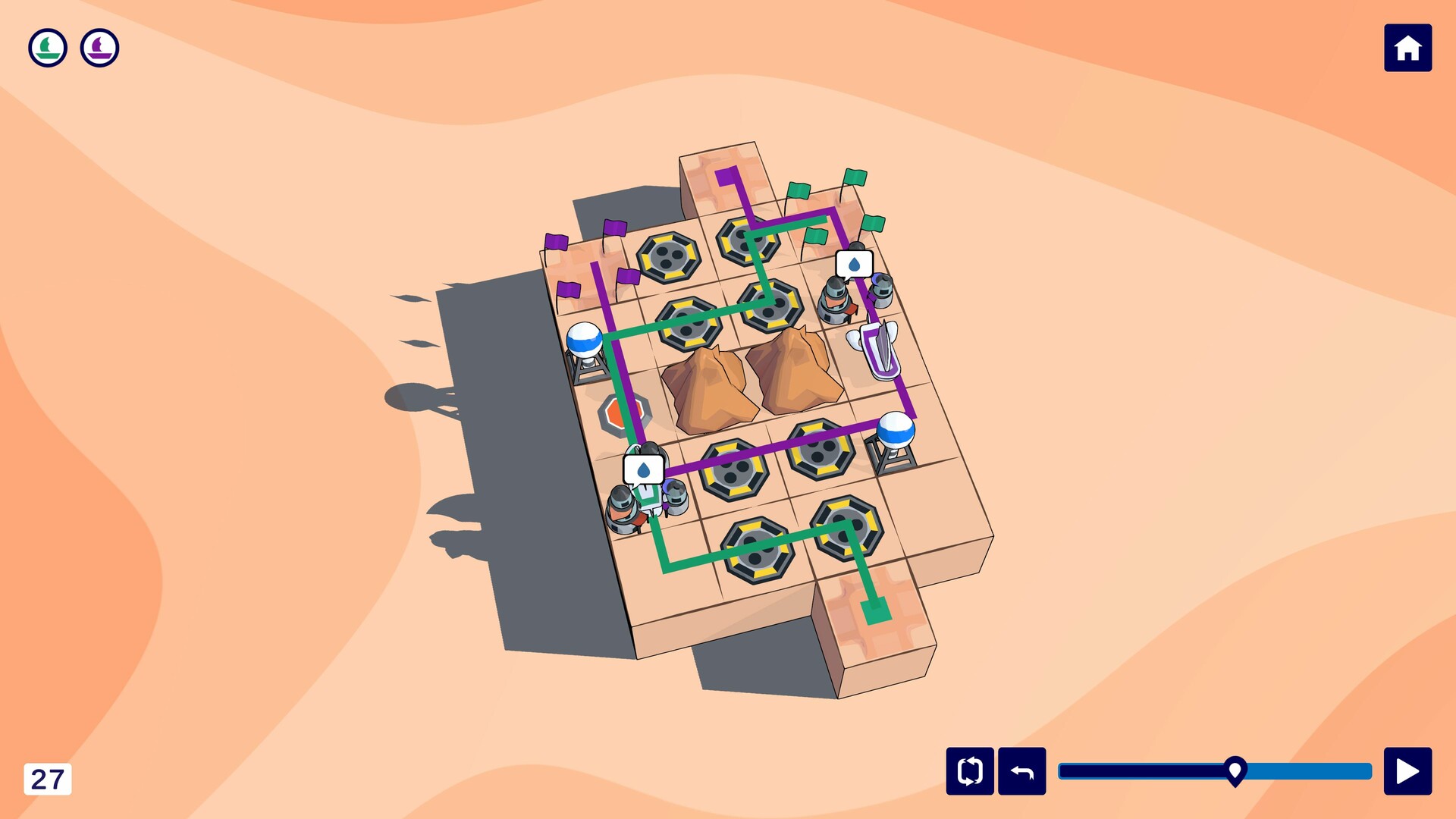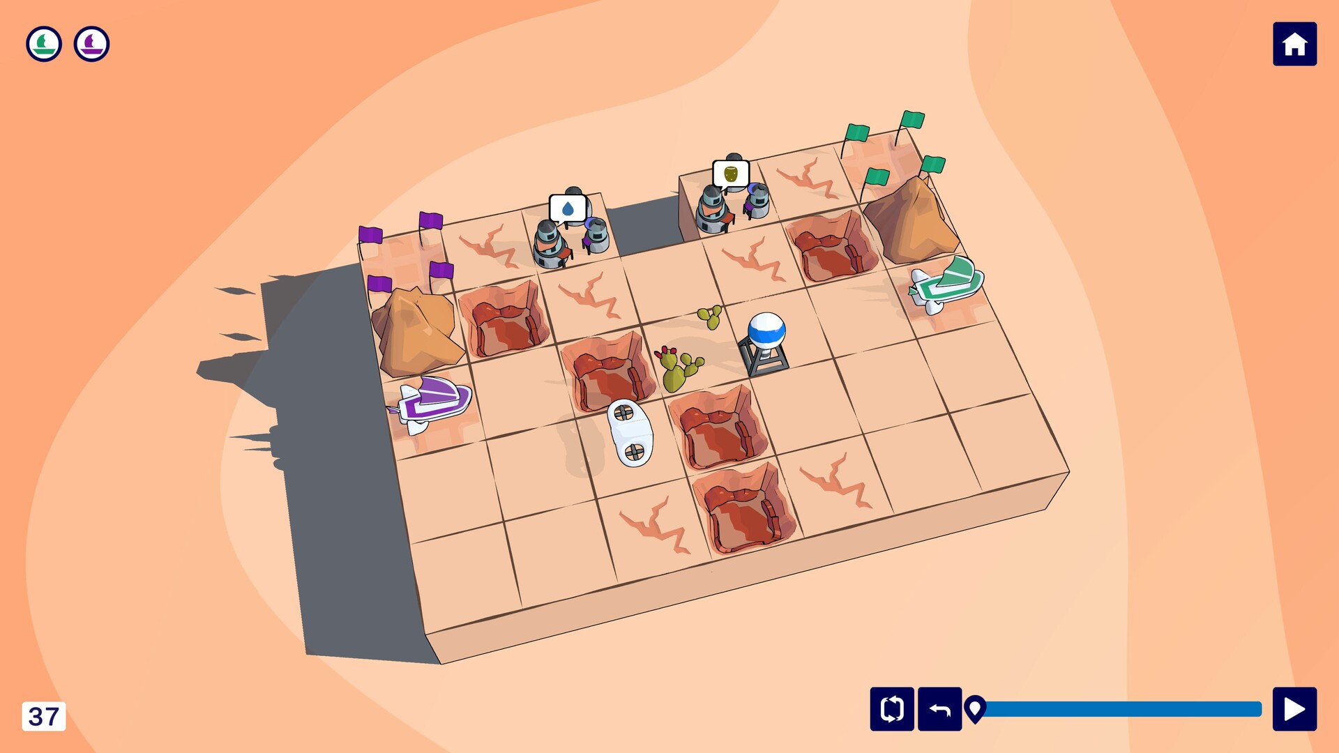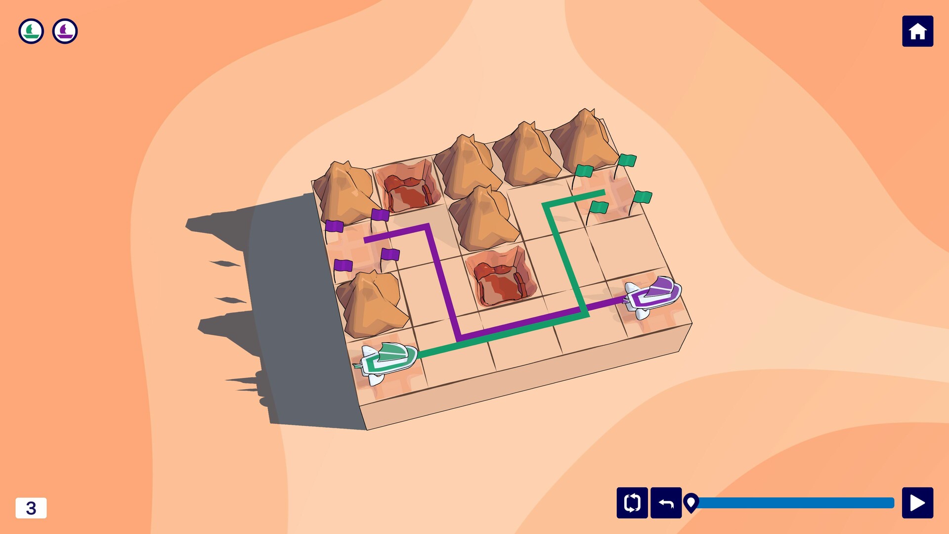 Plan your route by drawing paths across the desert grid. All sandships must follow their trails without visiting the same space twice - and without crashing into one another. With every route you sketch, you're constructing a web of paths across the dunes.