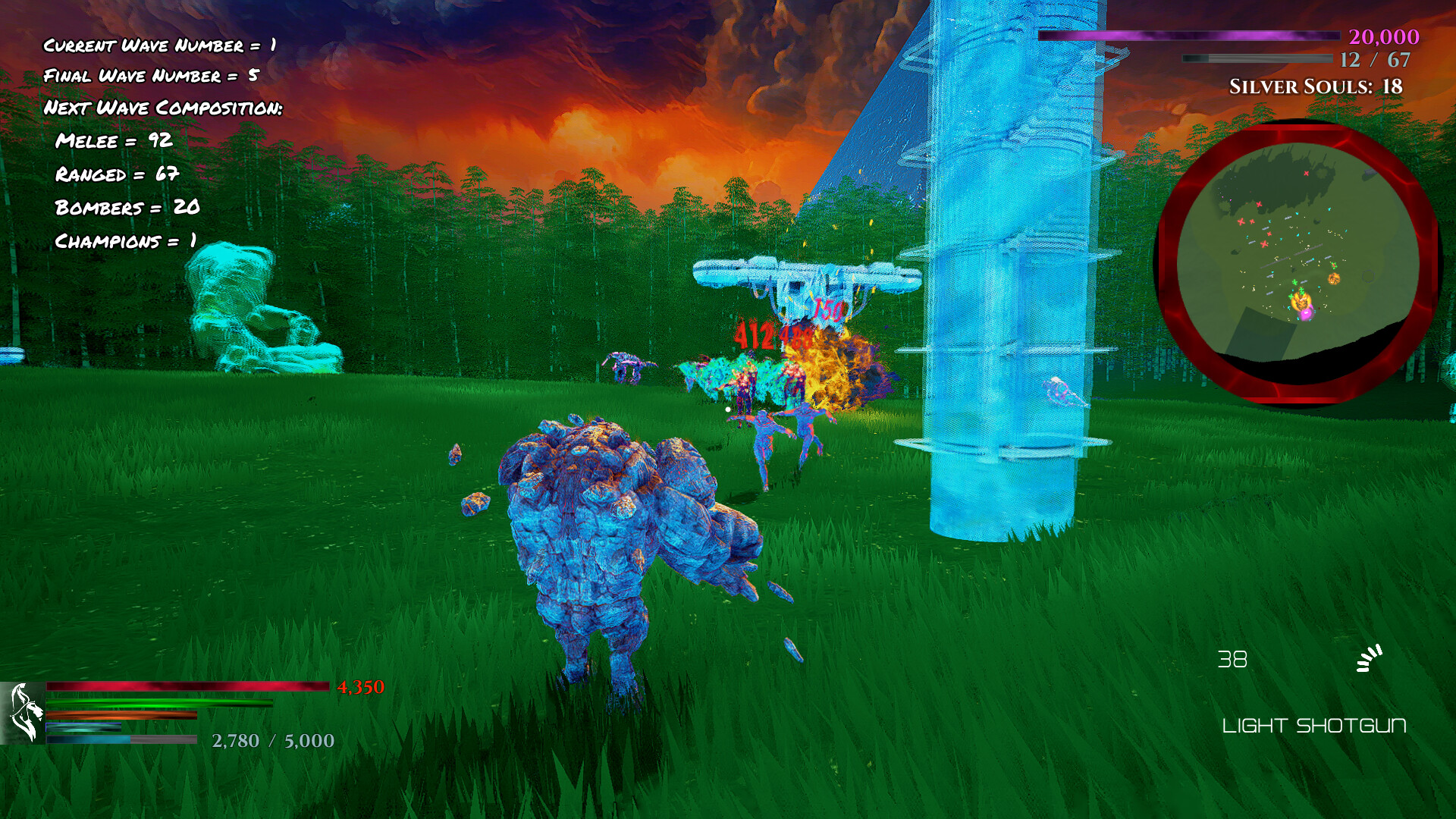 Smash your way through endless waves of enemies and grow insanely powerful with spells + guns! Summon armies, fortify bases, level up, dash around enemies effortlessly, unlock characters + upgrade to create unique and wild builds as you fend off swarms of monstrosities in this surreal RTS-TPS hybrid