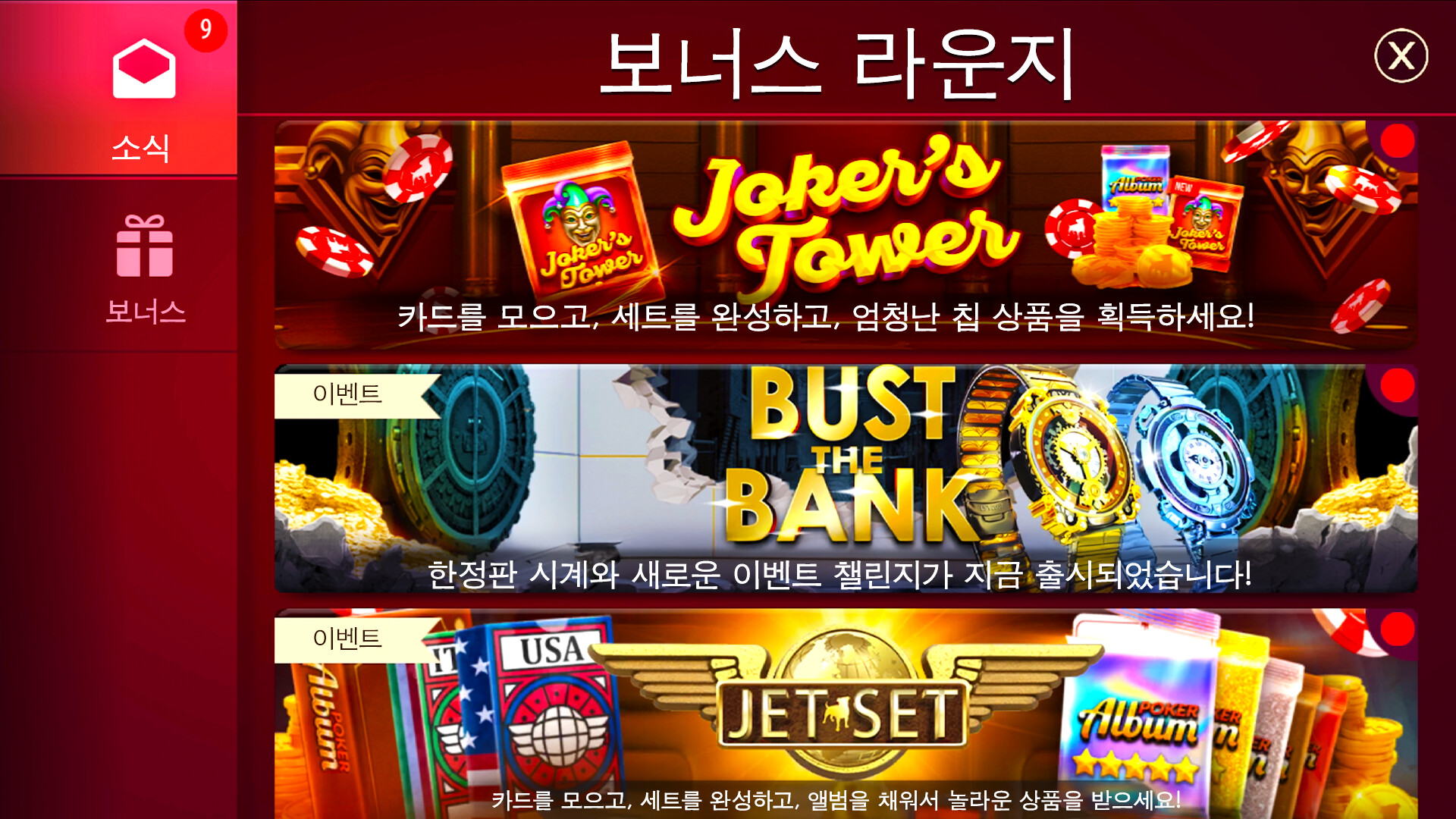 푸짐한 13,000,000 무료 칩 환영 보너스와 함께 포커 여정을 시작하세요! 포커가 처음이든 숙련된 플레이어든, 편안한 분위기와 매일 최대 45,000,000 칩의 보상으로 칩 스택을 계속 늘리고 액션을 이어갈 수 있습니다.