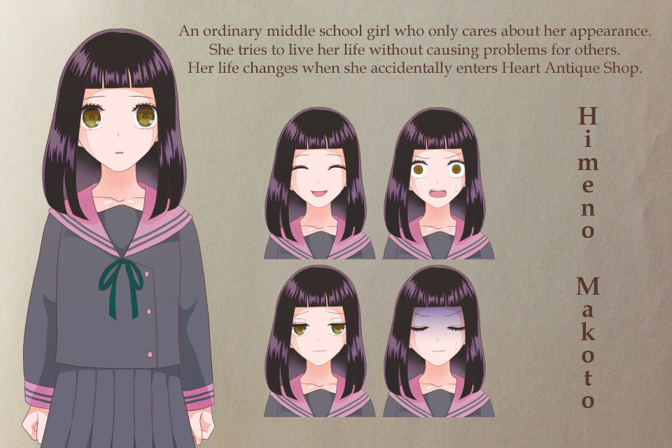 The demo version of the game includes the introduction to the characters for the first time and the prologue. The heroine enters an antique shop for the first time and learns its secret.