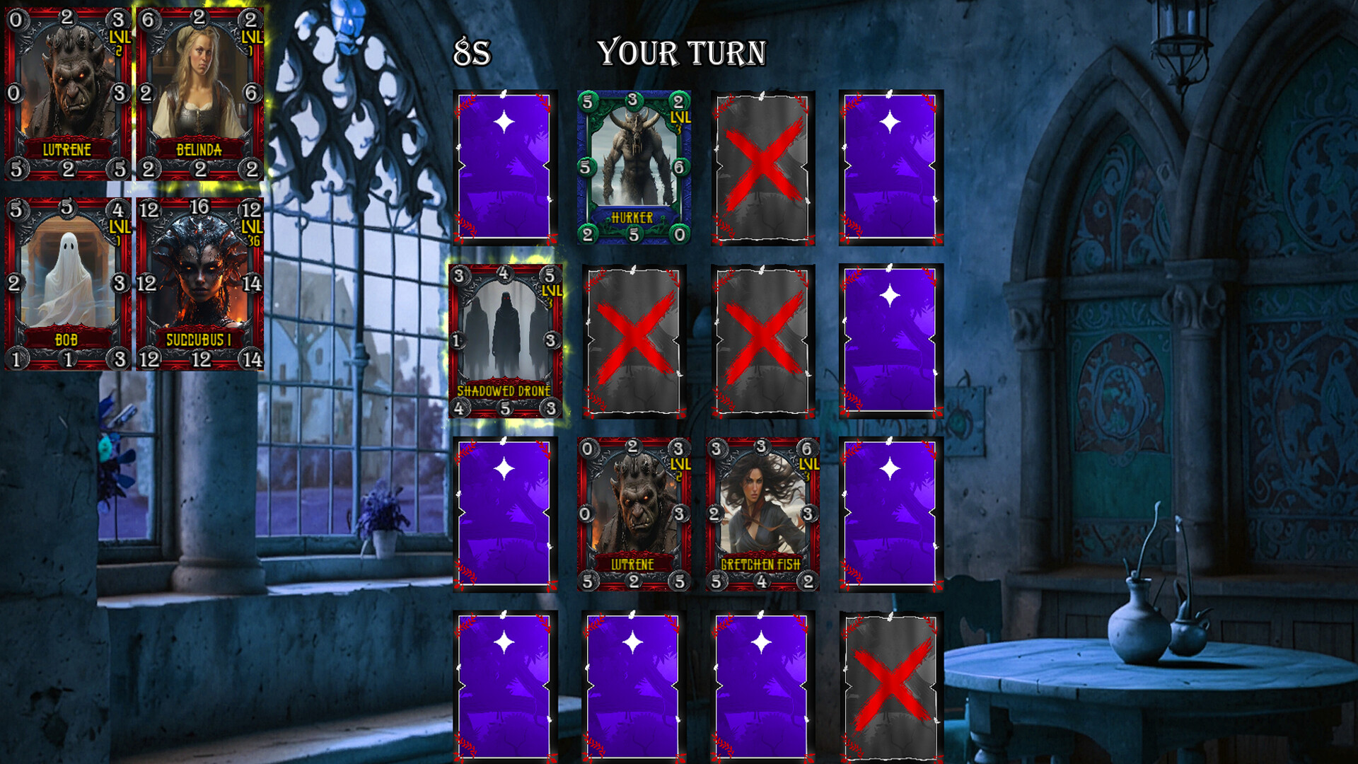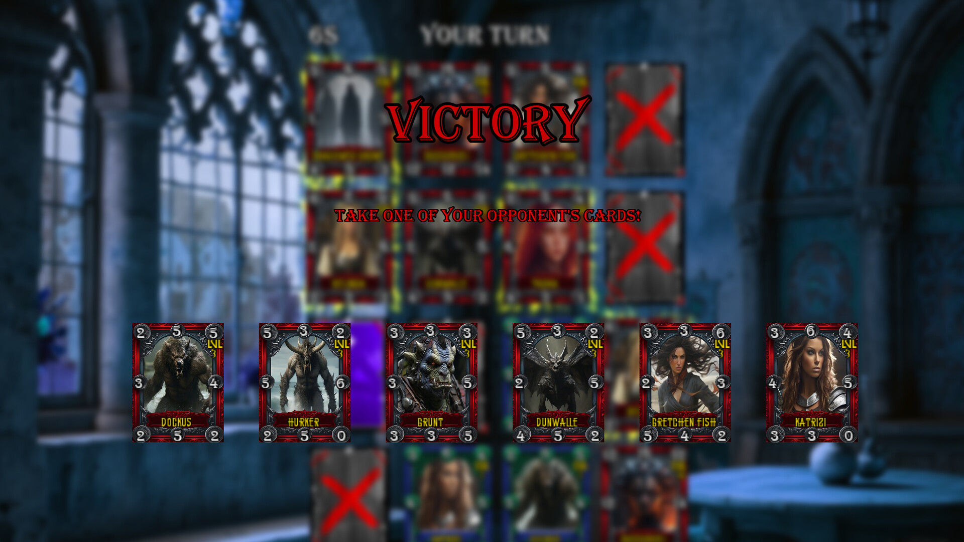 Loosely based on Triple Triad mechanics. CoXistence goes in a different direction, with 8 points of attack, a 4x4 board and a randomized playing field every game. Singleplayer is a world map jaunt, in which you can earn cards to strengthen your deck or forge a new one.