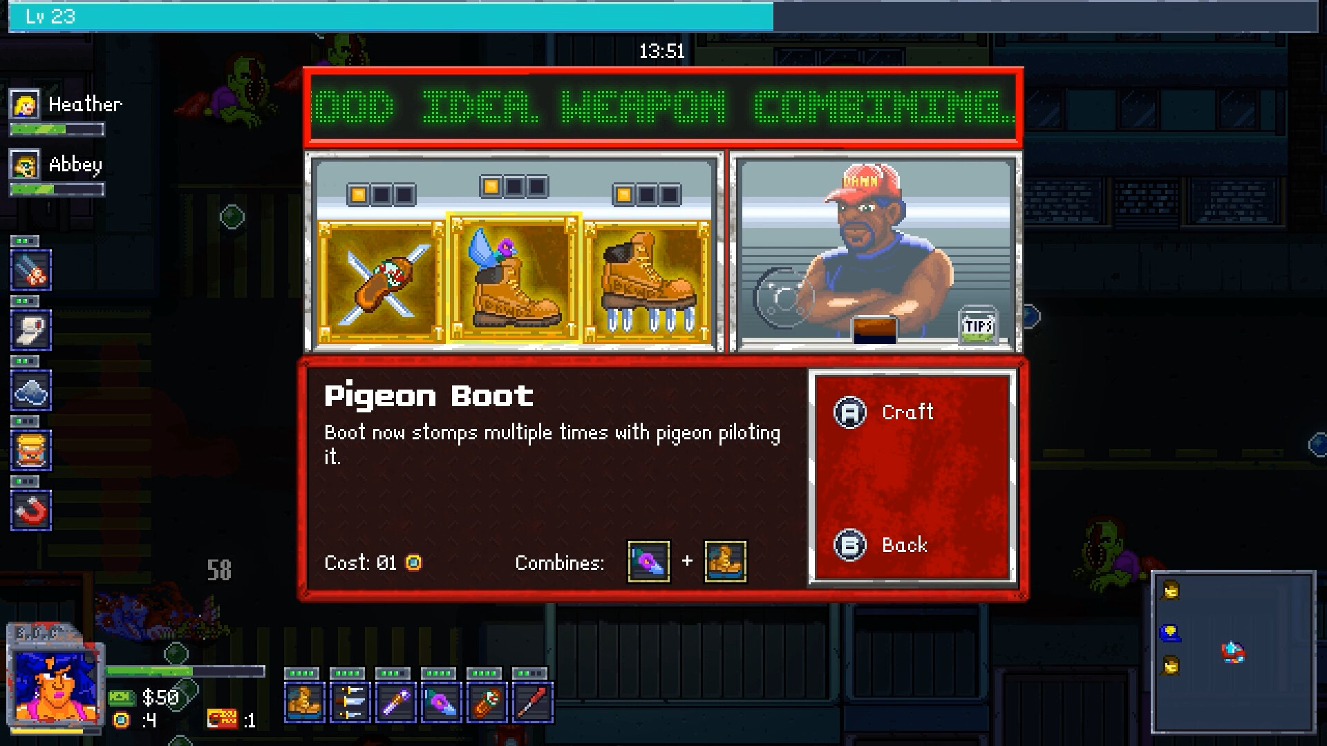 Create wild weapon combos! Strap knives to slippers and shred hundreds of fiends or make a bazooka out of fireworks and a pipe to blow up everything in sight. Experiment to uncover fun new combos!