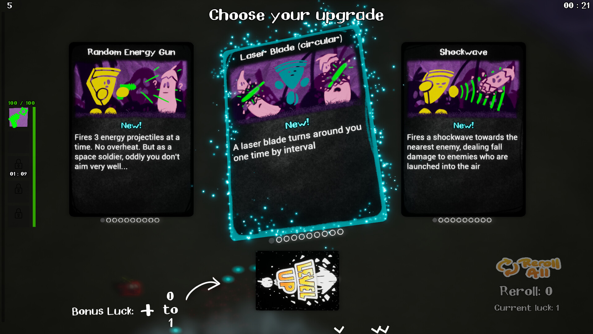 The Last Kich of Us is a survivors-like / bullet heaven / auto-shooter type action rogue-lite that immerses you in a quirky post-apocalyptic universe, enhanced by its hand-drawn characters.