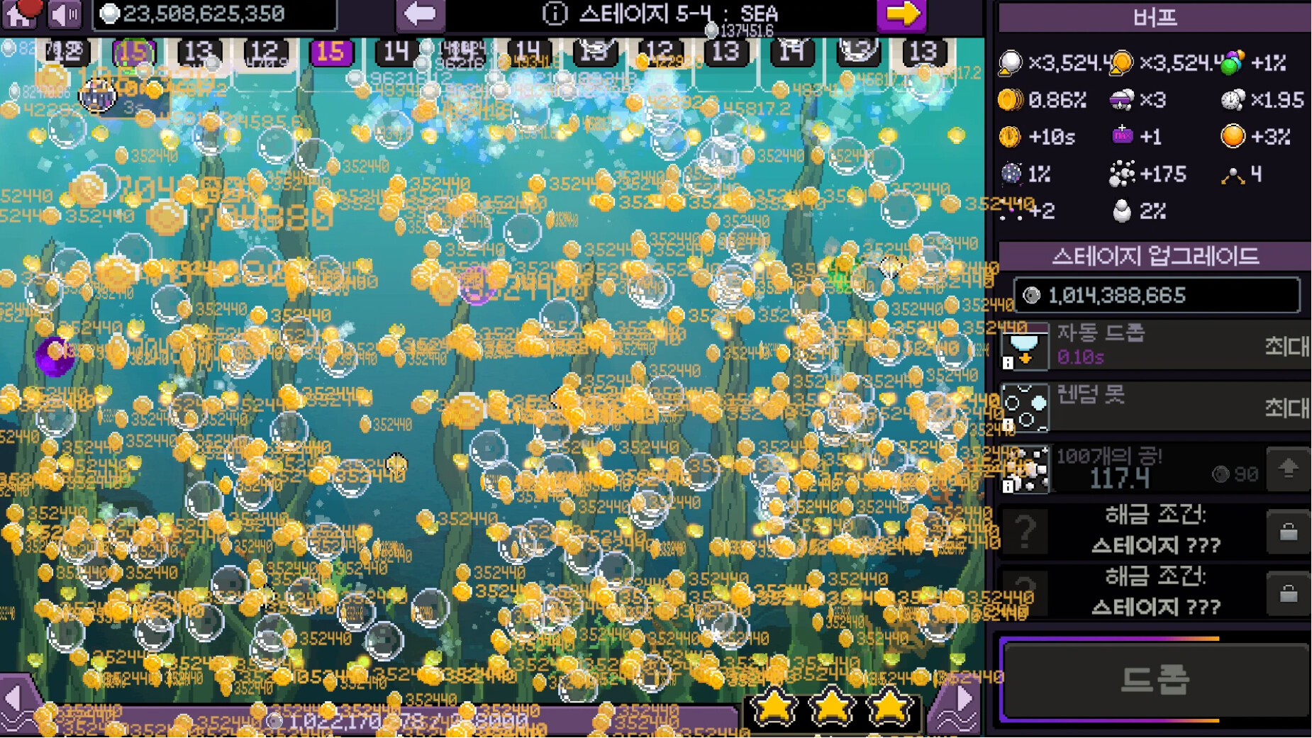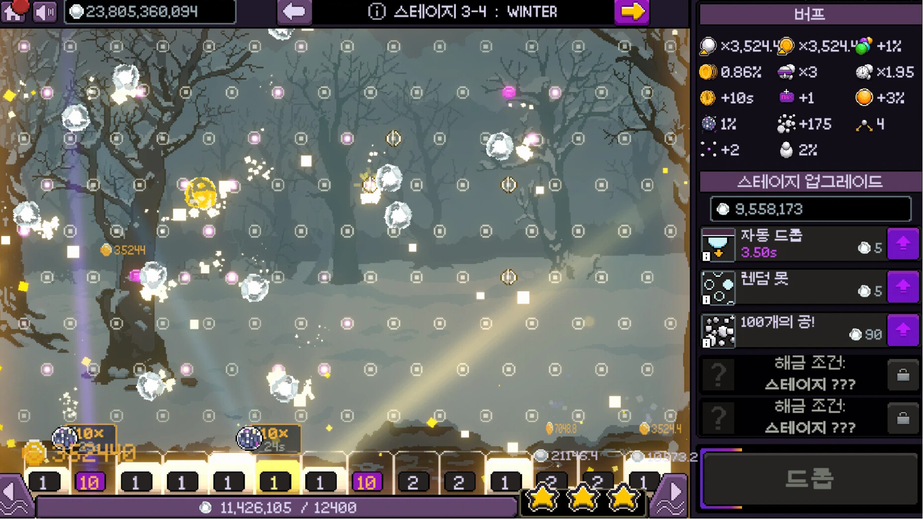 '드롭' 버튼을 클릭하면 다채로운 픽셀 못들 사이로 공들이 튀고 분열되며 예측할 수 없는 궤적을 그립니다. 이 공들이 코인에 부딪히고, 빛나는 효과들을 일으키며 버킷에 떨어지는 모습을 지켜보세요. 업그레이드를 거듭할수록 코인은 홍수처럼 쏟아지고, 화려한 효과와 빛남이 화면을 가득 채웁니다. 매 드롭이 예상치 못한 연쇄 반응을 일으키며, 멈출 수 없게 만들 것입니다!