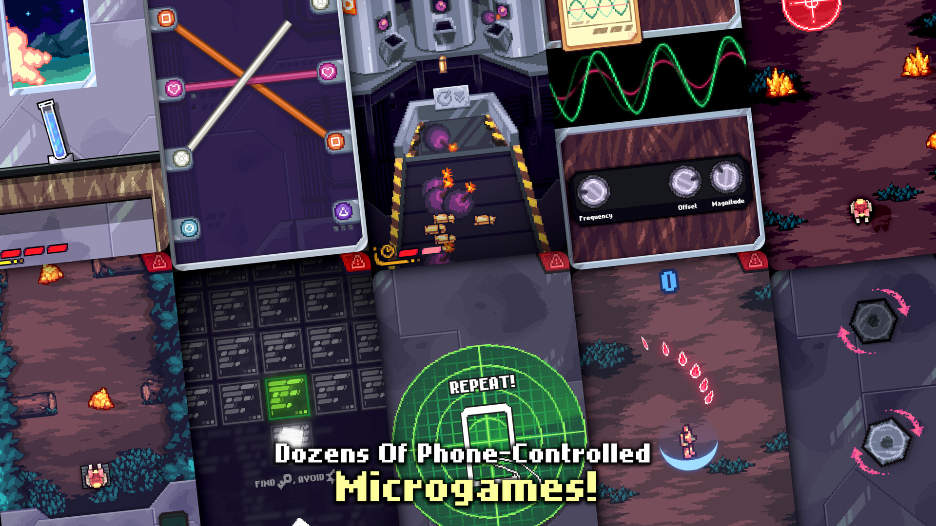 Travel to the untamed Stardust Frontier, and forge into the unknown in this roguelike microgaming party adventure! Team up with up to four players and battle against hostile wildlife, scrappy scavengers, or even against an opposing team in the eight-player Team-vs-Team Mode! Your mobile devices are your interfaces, and through them you'll play a myriad of microgames to take aim, fire powerful weapons, repair your mech, and unleash devastating team tactics against your foes!