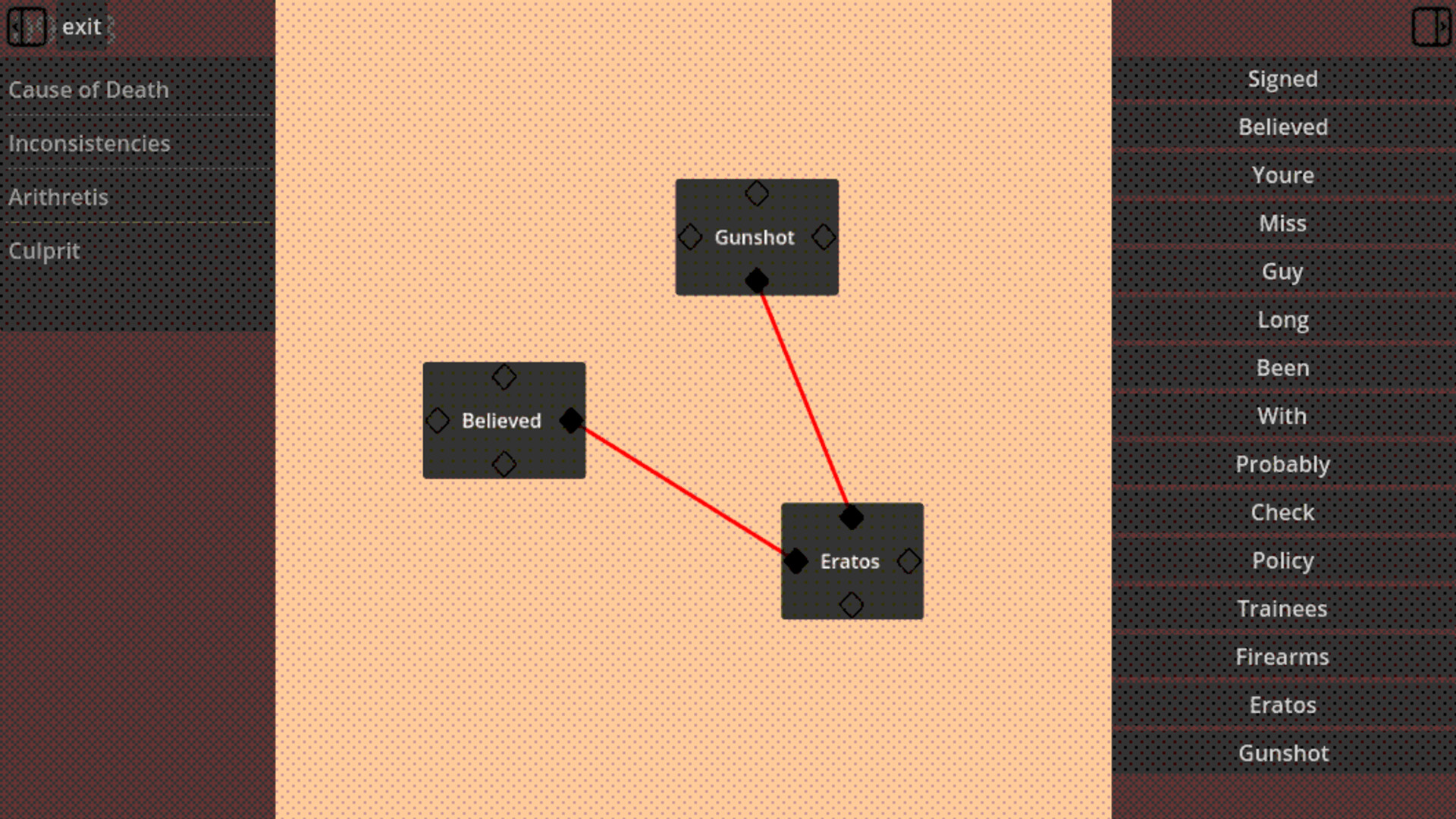 Find the relations between the selected words using your red string conspiracy board.