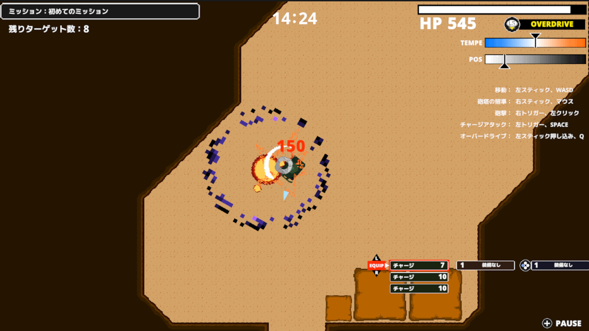 This game is a trial version of a top-down 2D tank action game. Players control a tank and clear missions by defeating opposing TANKs by charging and firing. The appeal of this game is being able to freely develop tactics based on the battle situation, and your own equipment, and win.