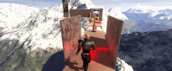 Unpredictable wall-mounted boxing gloves, spinning traps, and laser hazards