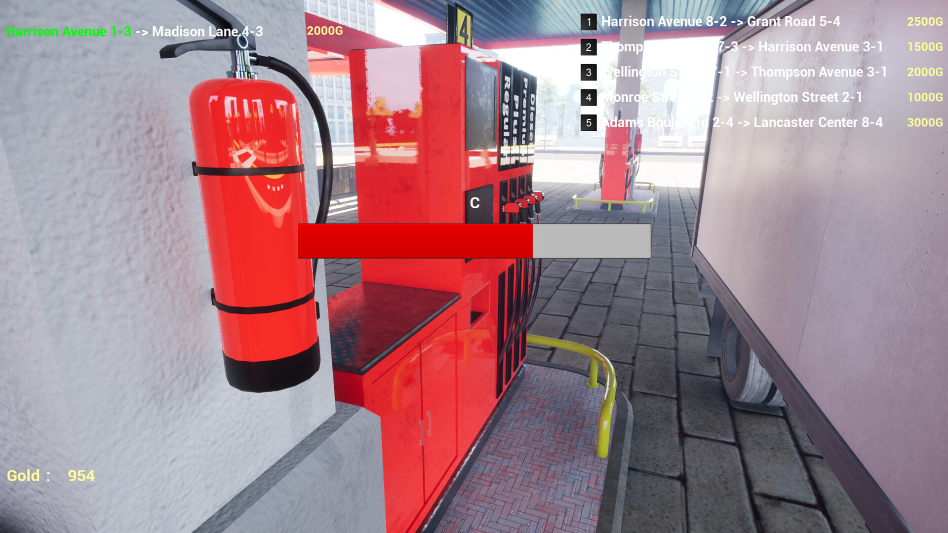 트럭의 연료가 모두 소진되기 전에 주유소에 도착해 연료를 충전하세요.
