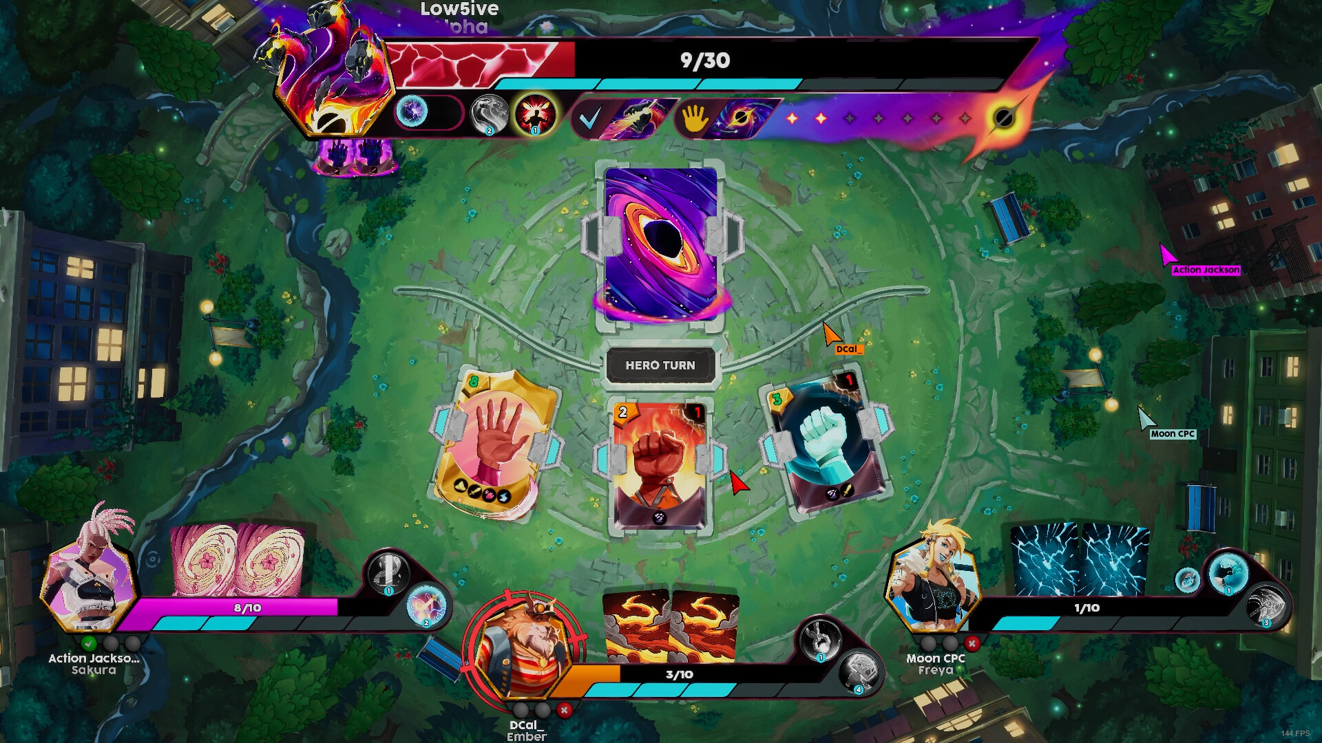 The Heroes respond together: each Hero chooses their own throw. Every comp enables new strategies—work together and lock in!