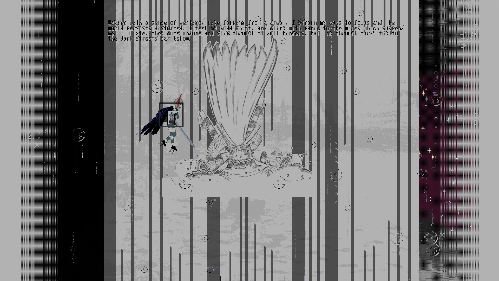 You puppeteer your sword's collision in this game with either gamepad or mouse, and you can deflect attacks or dismember your enemies. The player can fly a bit, glide, and bunnyhop to maintain momentum if you're brave enough.