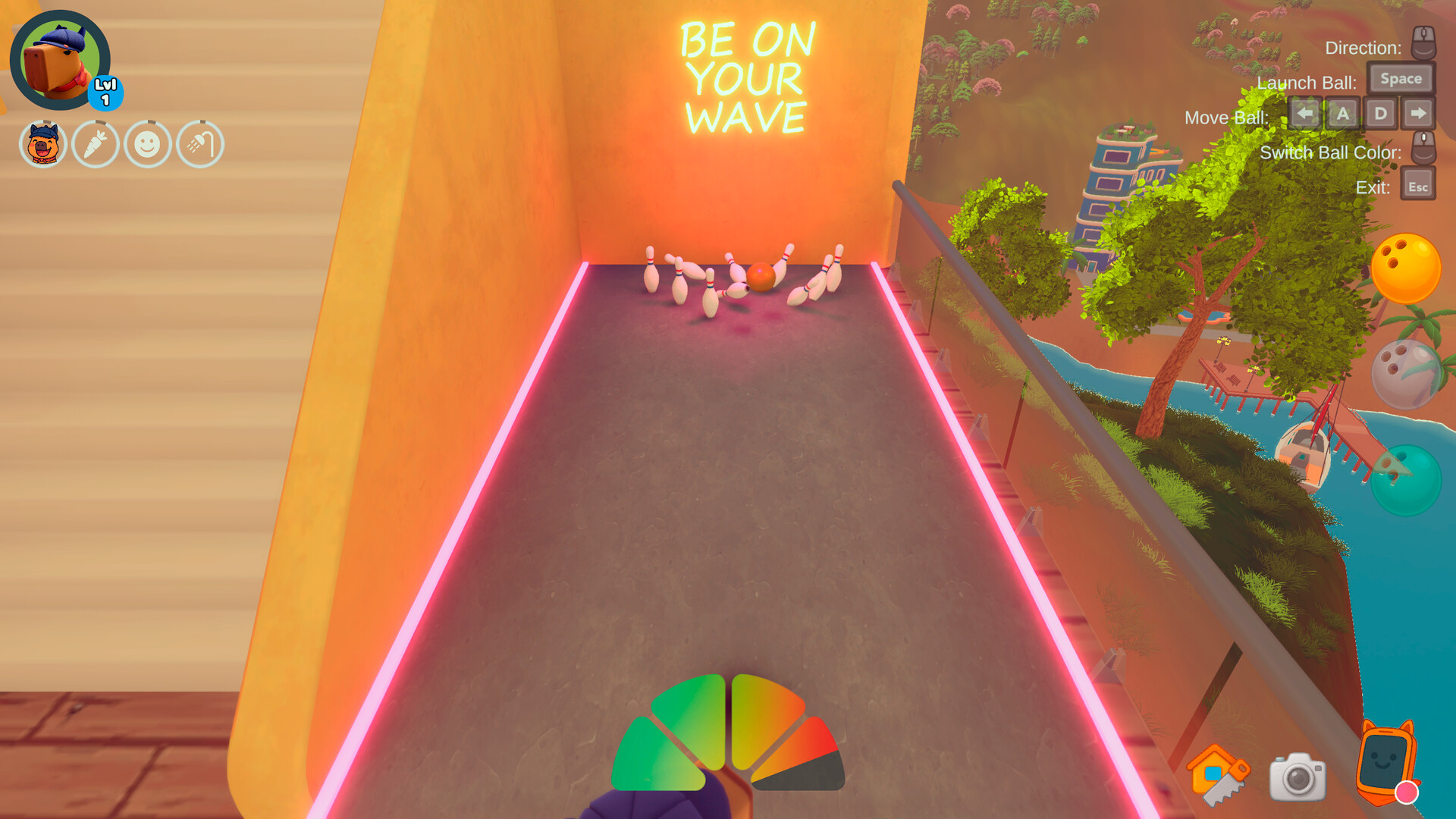 볼링 미니게임, 그림을 그릴 수 있는 아트존, 정원 가꾸기 요소 포함