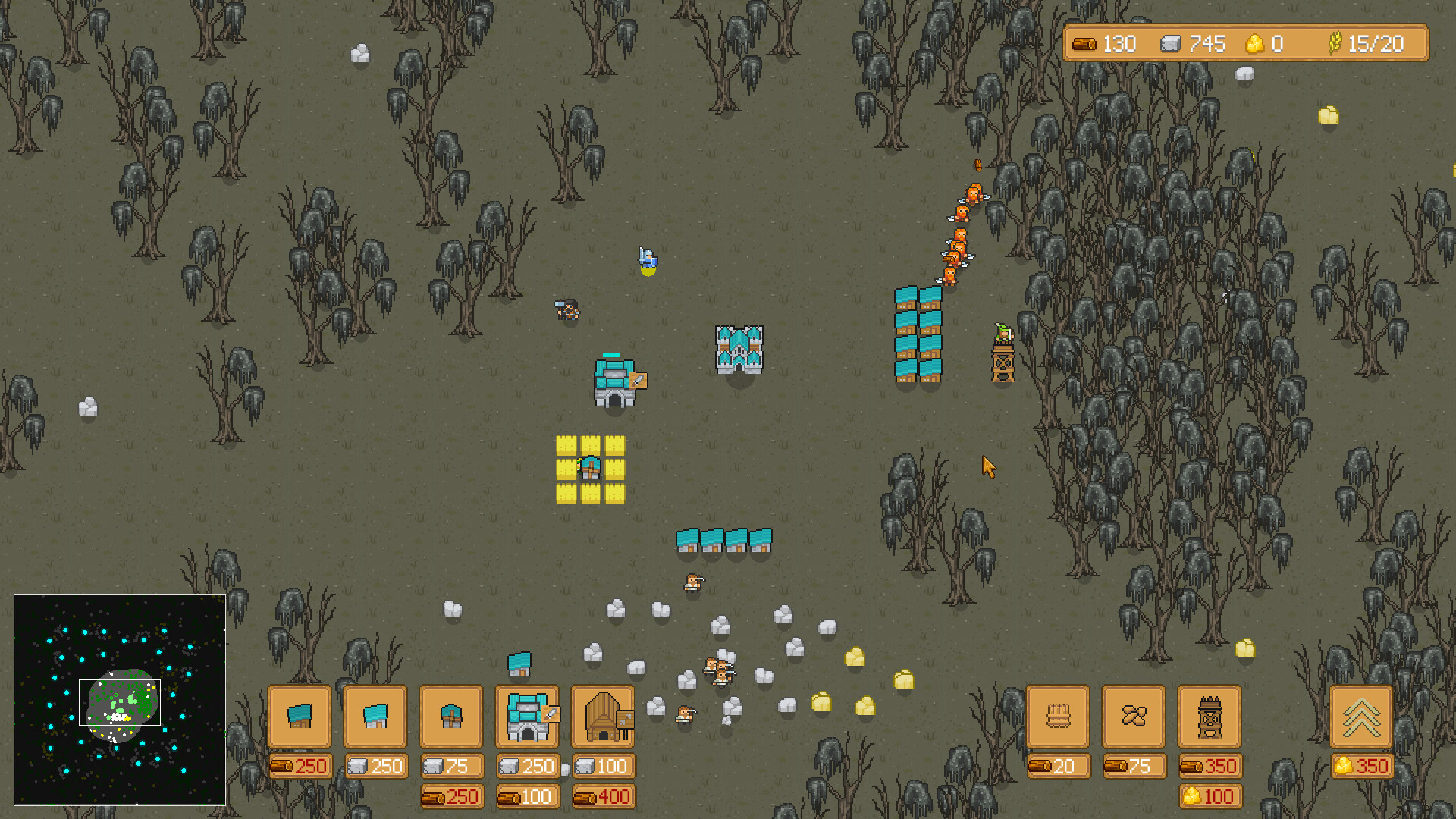 • 목재: 벌목꾼이 나무를 베어 획득하며 건축에 사용됩니다