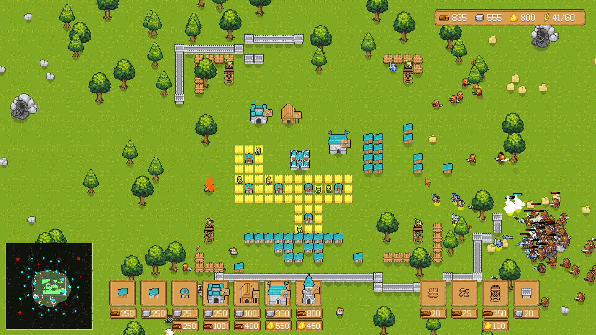 • 방어 구조물: 궁수 탑, 나무 울타리, 석재 성벽