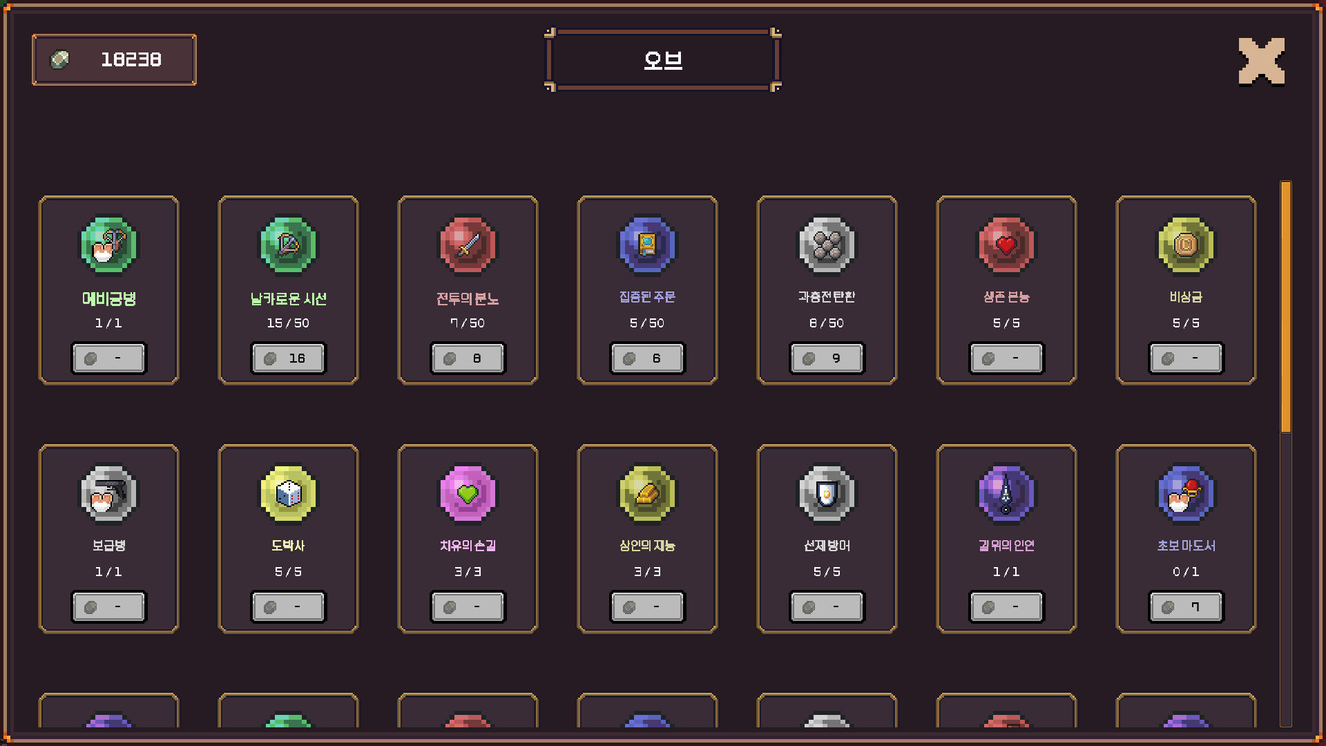 전투로 획득한 재화로 오브와 영웅 동료를 강화해 다음번엔 많은 유물과 동료들로 탐험할 수 있습니다.